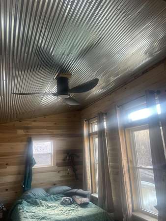 Escape to your own private wilderness with this one-of-a-kind 560 sq ft off-grid cabin nestled on approximately 14.2 acres of diverse terrain. Designed with sustainability and self-reliance in mind, this rustic getaway is nearly complete - just waiting for your finishing touches to bring it across the finish line. Inside, the cabin features warm, poplar tongue-and-groove walls and trim, fully insulated for year-round comfort. A sun-tracking solar panel system powers the essentials, while propane is available for the stove, water heater, and other off-grid utilities. A wood stove in the main living area provides efficient, cozy heat through the colder months, while a mini-split system offers additional heating and cooling to keep the interior comfortable in all seasons. A 275-gallon cistern collects rainwater for your water supply. Step outside and explore the land: two serene ponds, multiple ATV trails carved through the landscape, and an abundance of wildlife make this a true hunter's paradise. Deer, turkey, and other game are plentiful, offering excellent opportunities for outdoor sportsmen. Tucked into the hillside, a steel shipping container provides added storage and doubles as a secure storm shelter or emergency bunker. Whether you're looking for a hunting cabin, weekend getaway, or a head start on full-time off-grid living, the hard work has already been done - thoughtfully planned infrastructure, natural resources, and endless potential await. Seller to provide a $2,500 seller concession to buyer at closing.
