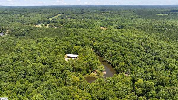 Tucked away just 15 minutes from downtown Fountain Inn and Simpsonville, and only 30 minutes from Greenville, this +-63-acre property at 360 Terry Road offers the rare opportunity to create a truly private retreat or family compound. With +-760 feet of road frontage and gently rolling topography, the land is primed for a grand homesite or multi-generational estate. The property features essential infrastructure already in place, including buried power from the road to the homesite, two 50-amp RV hookups, a newly installed +-500 ft water line, and a DHEC-approved septic permit. A custom-built pond dock adds charm, while a +-5,000 SF steel-framed metal building with terminal power supports solar or generator systems for off-grid possibilities. Whether you're seeking a secluded personal haven, a recreational getaway, or a long-term investment in unzoned land, this property offers unmatched versatility and potential. This is more than just acreage, it's a foundation for legacy living.