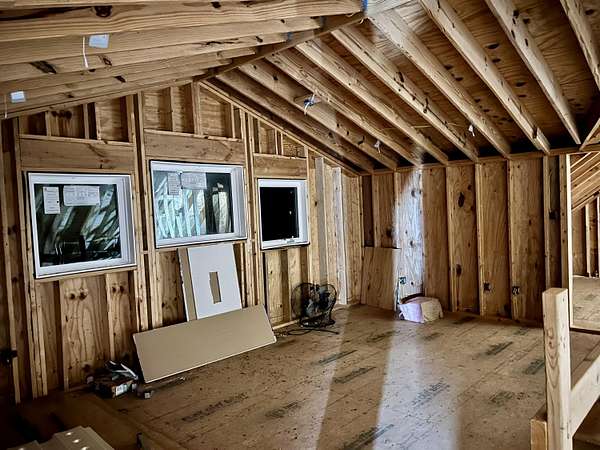 Newly constructed unfinished multigenerational home located on 4 acres. Separate level living with 2 kitchens, 2 laundry rooms, and an en-suite for every bedroom. The main floor features 21' cathedral ceilings, 8' doors and 15 3'x6' windows creating a spacious home boasting panoramic views. Includes an additional 20'x24' loft space and 2 flex rooms with ANSI standard windows. Secondary living space is a walk out basement with 8" poured concrete walls. 10'6" ceilings and 9 windows maintaining an airy, open space with plenty of natural lighting. Recessed LED ceiling lighting, full cat-6 wiring and knotty pine decorative doors installed in below grade area. Highlight is the 9'x14' bathroom with a walk-in wet room style shower that has room for a large standing soaker tub. Fully established for split utilities with two 200amp meters, 2 hot water heaters, and ExpressWater whole house 3-stage filtration systems. HVAC is already installed using zoned Daikin Mini Splits, warranty included. Bluetooth exhaust fans are in all bathrooms. Entryways are studded for double doors, all exterior doors are currently glass for additional natural light and views. Windows are a combination of casement and picture. Built for longevity with Advantech flooring and 2"x6" walls throughout. Wiring and plumbing is completed on both levels. A hard wired security system and high speed fiber optic internet is installed with cables buried. Underground utilities protect property views. The driveway is fully felted and graveled down to the road and property line is partially fenced. Featuring a no freeze outdoor spigot with shut off and RV electricity hook up. Additionally 2 outbuildings included. A 16'x16' wired shed and a 10'x16ft' partially wired and sprayfoamed shed that has Pioneer minisplit HVAC installed.