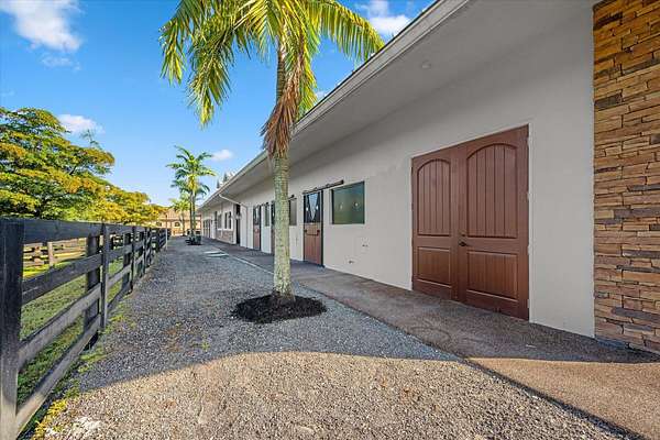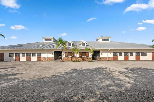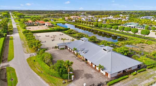 Welcome to a fantastic equestrian opportunity in Grand Prix Village South-a prime location offering the epitome of convenience for the equestrian enthusiast! This exclusive property boasts direct bridle trail access to the WEF show grounds-a true privilege for those seeking unparalleled access to equestrian events. At the core of the property is a 225'x140' fully irrigated, lighted arena with a new GGT footing mix. Have the ultimate privilege of practicing in your own private arena and then walking straight to the show ring! Barn features include; aisle-ways with EquiTan poured rubber flooring by IDA, 24 permanent stalls, 12 grooming/flex stalls- customizable up to 36 stalls, 8 hot/cold wash stalls, 4 feed rooms, 4 tack rooms, 2 laundry rooms(8 washers/dryers), and 2 full bathrooms. Beyond the arena and stabling facilities, the property offers six well-maintained paddocks, providing ample turnout space for your equine companions. Practical considerations are not overlooked, with sufficient parking space for multiple large horse trailers, ensuring seamless logistics for transport. The barn structure itself is engineered with the future in mind, allowing for easy expansion to a second level if desired. A fire suppression system is already in place, meeting the necessary safety standards for potential living quarter expansion. This property has a proven track record of generating exceptional seasonal rental income, making it not only a dream location for personal use but also a savvy investment opportunity. With the recent approval for the Showgrounds expansion from the Village of Wellington, "Parcel F" will be a short, direct hack on the bridle path to the new and improved show facilities. Several permanent barns, FEI barns, vendor areas, parking, restaurant, schooling rings, covered arena, competition rings, Derby Field, and International Stadium are in the plans ( see photos/documents).