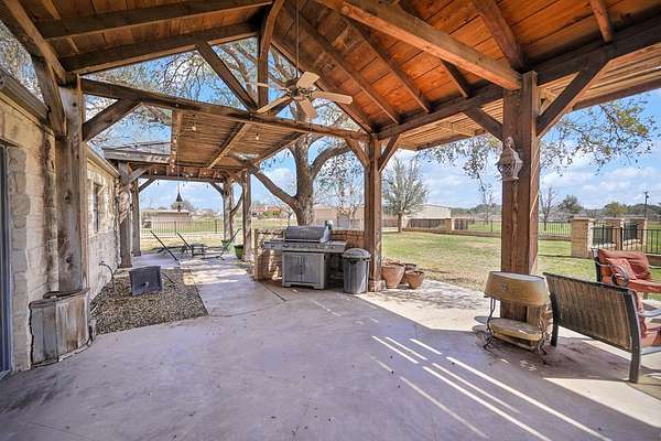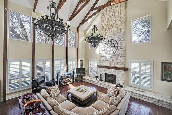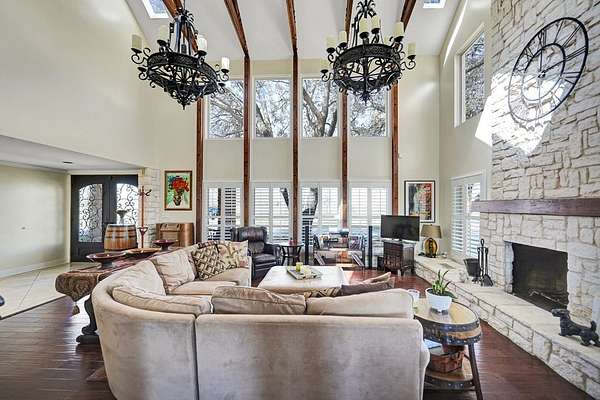 Est $8,876/moRARE OPPORTUNITY IN THE CITY ON OVER 3 ACRES! THIS 6 BEDROOM, 4.5 BATH HOME OFFERS 6,485 SQ FT OF LUXURY LIVING. STUNNING LIVING AREA WITH SOARING WOOD BEAM CEILINGS AND A WALL OF WINDOWS. FORMAL DINING AND A SPACIOUS KITCHEN PERFECT FOR ENTERTAINING. MULTIPLE LIVING AREAS INCLUDING A WET BAR, FIREPLACE, STUDY, AND HALL OFFICE NOOK. PRIVATE IN-LAW SUITE WITH ITS OWN LIVING, DINING, AND KITCHEN. UPSTAIRS LOFT/MEDIA ROOM. FABULOUS DOWNSTAIRS PRIMARY SUITE. HUGE BACKYARD WITH WORKSHOP, HEN HOUSE, AND 3 CAR GARAGE.