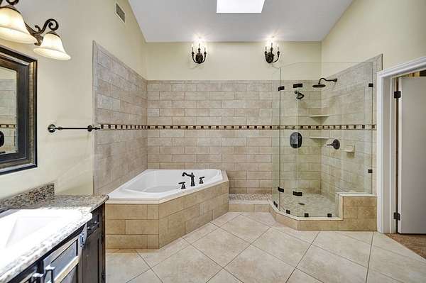 - Auto Garage Opener, Book Cases, Carpeting, Ceiling Fan(s), Hardwood Floors, High Ceilings, Jetted Tub, Propane Tank-Leased, Reverse Osmosis-Owned, Skylight(s), Smoke Detector(s), Tile Flooring, Wet Bar, Wood Shutters