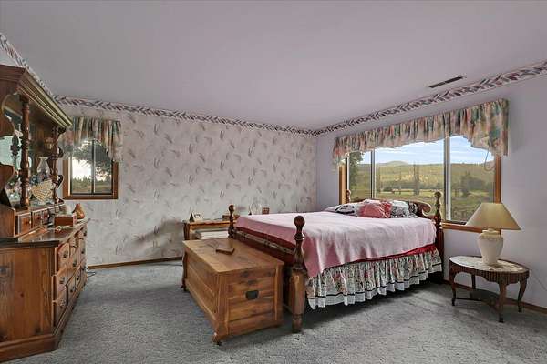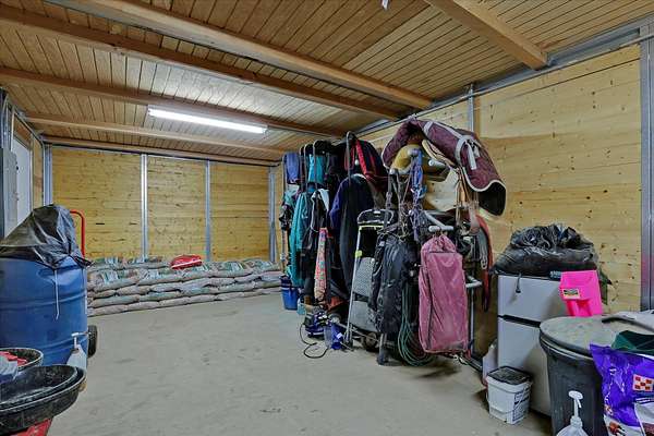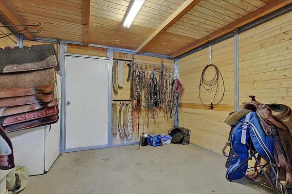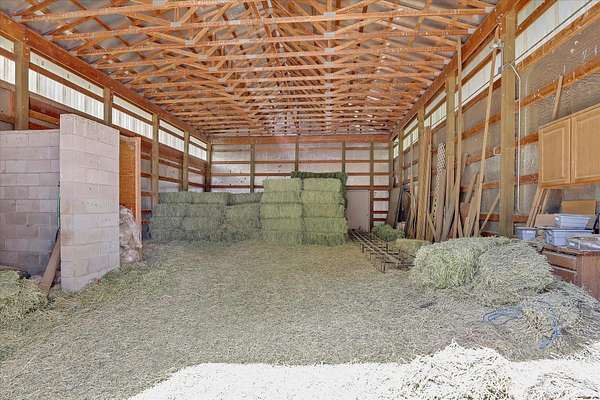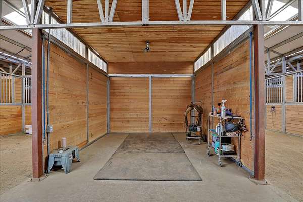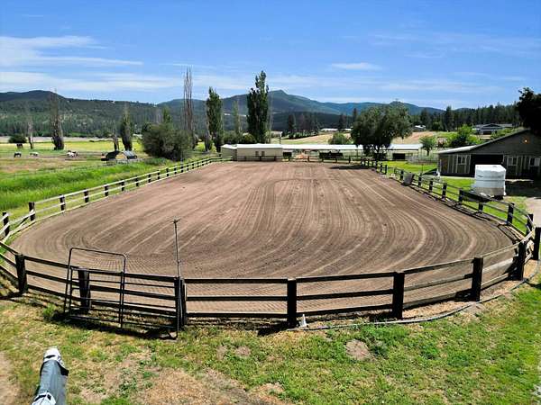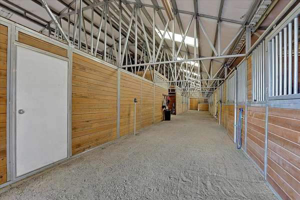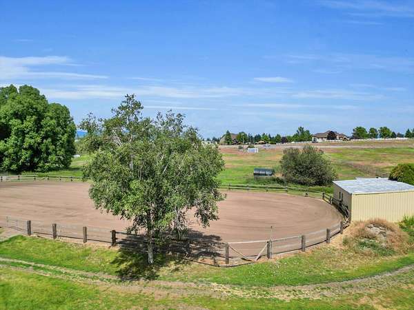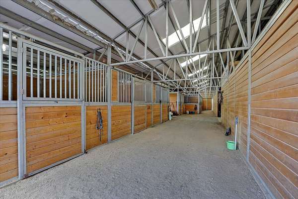 Discover unparalleled equestrian living and training on this expansive property with an ADU. The highlight is a 60'x96' 17-stall horse barn with automatic waterers, 4 foaling stalls, a heated wash rack, tack room, grain room, and Fly Guard System. The property also boasts a 90'x220' arena, 30'x44' hay barn with a 50 ton capacity, a 90' round pen, 7 irrigated acres of pasture with automatic waterers, and 10 outdoor stalls providing ample space for all your equine friends. The home features 3 bedrooms (1 non-conforming), 2 updated showers, main floor laundry, a walk-in pantry and custom cabinets. The primary ensuite has a large walk-in closet and a sitting area with views of the arena. Additionally, there's a 2-bedroom, 1-bathroom 1999 double-wide home ideal for rental, farmhand housing or Mother-in law set up. Seller now offering 1% of purchase price as a concession towards buyers closing costs!