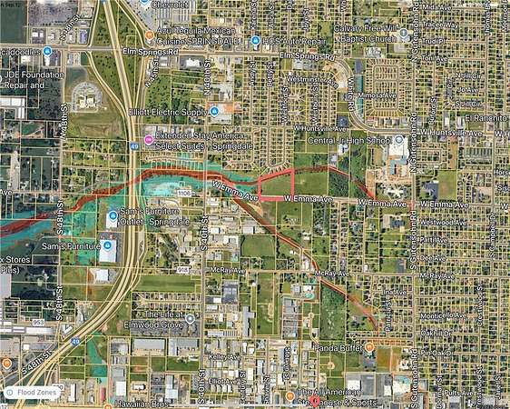 This great location is primed for development with a great balance of residential, industrial and agricultural properties surrounding it. It is only two minutes to I-49 and W. Emma has just been connected via flyover to Har-Ber Ave making it easier to get to the Har-Ber Meadows area and Hwy. 412 as well as Hwy 112. This property will be located right next to the future indoor pickleball facility. There is a small section at the NW corner of the property that is in a flood zone, creek is a flood way. Property is currently zoned SF-2 with adjoining properties zoned MF-12, MF-4 and C-1.