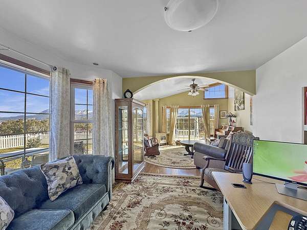 Experience the pinnacle of Colorado country living on this extraordinary 44-acre ranch estate-where breathtaking 365 degrees mesa-top views meet endless possibilities. Perfectly suited for small ranching, farming, or a private retreat, this property combines modern comfort with timeless rural charm. The beautifully remodeled ranch-style home features 4 bedrooms, 3 bathrooms, plus a non-conforming bedroom. Inside, a spacious, flowing floor plan creates a warm and inviting atmosphere. The upstairs loft offers an additional bedroom and cozy sitting area, while the basement provides abundant storage and the potential for a large workshop, studio, or expanded living quarters. Move-in ready and updated, this home is designed for both comfort and function. Outdoor living is equally impressive. A super-efficient 16x50 greenhouse, partially bunkered underground for natural climate control, extends your growing season year-round. The expansive yard features a brand-new sprinkler/drip system, lush seasonal lawn, and a large pond-home to livestock, waterfowl, and wildlife, and even once used for winter ice skating. Fertile hayfields are fenced and cross-fenced, while a thriving garden with rich soil is fully enclosed by high deer fencing. Fruit trees, including a plum tree and what many claim are the best apricots ever, flourish here. Water and utilities abound: 1,000 shares of Fruitland Irrigation, two domestic water taps (Cathedral Peak and Fruitland Domestic), and electricity in two locations, including 220 power. Both the home and greenhouse each boast their own 500-gallon propane tanks, while the nursery has a dedicated 150-gallon tank-all tanks are owned, not leased. Adding character and charm, a historic grainery has been transformed into a unique hangout and shooting gallery-perfect for entertaining or simply watching the massive mule deer that roam your land. Whether your dream is a working ranch, a hobby farm, custom kennel, nursery, or simply a peaceful Colorado retreat, this rare property offers unmatched resources, spectacular scenery, and room to grow. This is more than a home-it's a lifestyle. Schedule your private showing today and claim your piece of Colorado paradise.