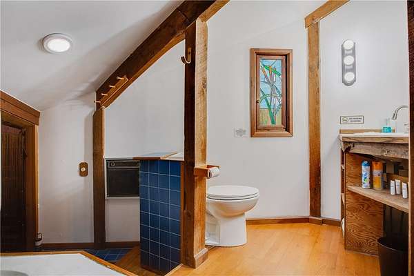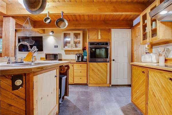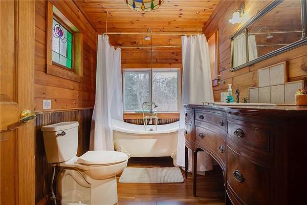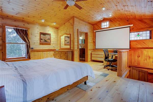 - Bath In Primary Bedroom, Bedroom On Main Level, Cathedral Ceilings, Ceiling Fans, Country Kitchen, Great Room, Guest Accommodations, Kitchen Island, Sauna, Skylights