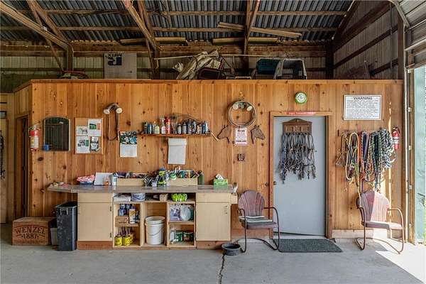 Perched atop a hill, the farmhouse and outbuildings offer a stunning southwest panoramic view of the acreage and animals. The pride of ownership and meticulous attention to detail are evident in every aspect of the thoughtfully designed layout and functional setup.