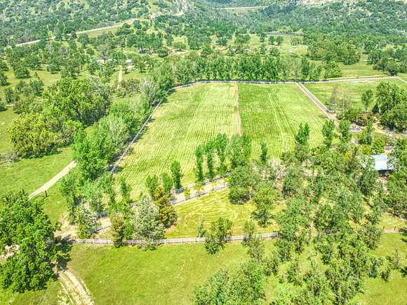 25 Acres with rustic mountain home...this property has everything you've dreamed of for your equine lifestyle! Manicured to create the ultimate horse setup. There are two fenced pastures, round pen, 12 acres for grazing, riding arena, Mare Motel with 8 stalls, tack room, 2 additional covered stalls, 50' x 21' Ad building, 30' x 40' metal shop, pond and springs! The home could be right out of the set of Yellowstone! Gorgeous masonry fireplace, cowboy bar, high pine covered vaulted ceiling and wrap around porch with outdoor fireplace. Located at the gateway to the Sierra Nevada Mountains and back country wilderness area with an easy commute to the valley... great location!
