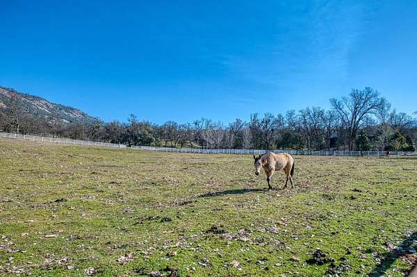 Shiloh Estate is more than just a property; it's a lifestyle. A perfect blend of seclusion and convenience. Looking for a business opportunity to run a professional equestrian operation or hobby farm or simply enjoy the pleasures of country living with your horses on 25 acres, this estate offers unparalleled opportunities. Over 2 acres of fenced in pastures, a seasonal creek, and a small pond that would significantly lower your feed costs. This property is a horse enthusiast's dream come true with a 8 stall mare motel, 2 additional stalls, horse washing paddock, self feeding, tack storage room, round pin, and riding arena! Has chicken coop set up, and mature fruit trees with over 2,000 ft of drip line. Massive 1,200 sq ft shop with 220 amp and roll up door, and an additional 1,000 sq ft Ag building with 4 parking stalls. Enjoy the jaw dropping wrap-around porch with the impressive fireplace as its centerpiece! Walk into this awe inspiring custom built home with breathtaking views of the Sierra foothills. Gorgeous pine throughout the entire home. The living room features a marvelous natural stone fireplace and custom built-in bar with its own sink and mini fridge. The home has 3 full baths, 2 bedrooms downstairs and a massive loft upstairs that can be enclosed as the 3rd bedroom with its own full bath. The kitchen features a walk-in pantry, locally made custom cabinets, stainless steel appliances, including new double oven and gas cooktop. Schedule your private tour today!