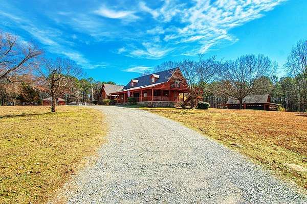 Experience Southern Living at its finest in this maintained, one-owner home situated on approx. 2.83 acres of privacy. The home's striking wood and rock exterior opens to a thoughtfully designed interior featuring a split-bedroom floor plan, including a spacious primary suite with ample closet storage and two additional oversized bedrooms. At the heart of the home, the chef's kitchen has granite countertops, while the inviting living area boasts a magnificent wood-burning rock fireplace with vaulted ceiling. Beyond the main 3-bedroom, 2-bathroom residence, a versatile heated and cooled bonus room with a full bath is located off the side porch (334 sq ft not included with house), perfectly suited for an in-law suite, guest quarters, or a dedicated homeschooling space. Exceptional exterior amenities include a charming front porch with a swing, an oversized two-car garage, and tornado shelter in garage. For the hobbyist or traveler, the property features a massive 30x40 insulated shop with a lean-to and RV cover. Home also includes a generator for peace of mind, this unique property offers the perfect blend of rustic elegance and functional living. See Remarks