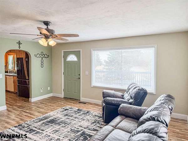 Updated home with attached two car garage, 1,089 sq ft shop, and storage shed on 4.21 acres! This beautifully remodeled home welcomes you into the 1,416 sq ft main floor through a sunny living room with new LVP flooring that stretches throughout your living space. Right off the living room sits a spacious, updated, eat-in kitchen with new cabinets, solid surface countertops, new appliances, and plenty of storage. Back through the living room you will find your first two bedrooms with new carpet and the first remodeled bathroom with a tub/shower combo, new vanity, and tile floors. The third bedroom is tucked down a hallway off the kitchen giving you nice privacy while still being close. This bedroom also features new carpet and a full wall of closet space! The hallway also takes you to the second remodeled bathroom with a walk-in shower and great storage and also holds the laundry area. Down a few steps from the kitchen and hallway you will find access to the front yard, the attached two car garage, and a short stairway to the 952 sq ft basement. Partially unfinished, this basement has a large living room area with a small furnace for a backup heating source, bonus room with closet space, and a huge storage/utility room. Outside you will find a fenced front yard with a deck, chicken coop with a fenced area around it, storage shed, and last but certainly not least- the shop! 1,089 sq ft shop has been enclosed by the owners and features a cement floor, overhead door, and 60 amp electrical service that could be upgraded to 100 amp. Come see this beautiful property in person and enjoy country living this summer!