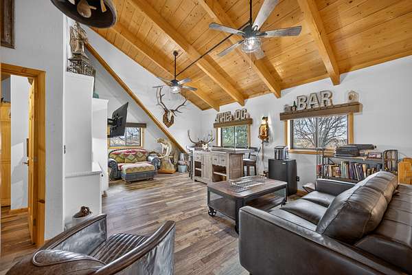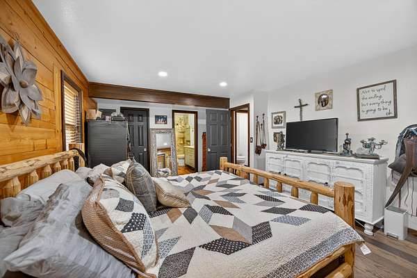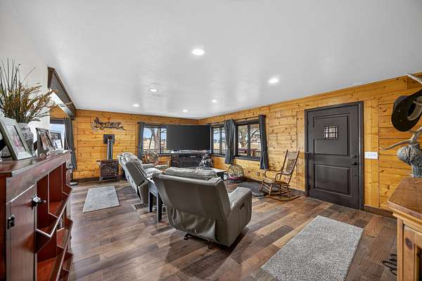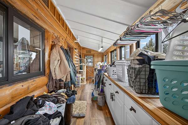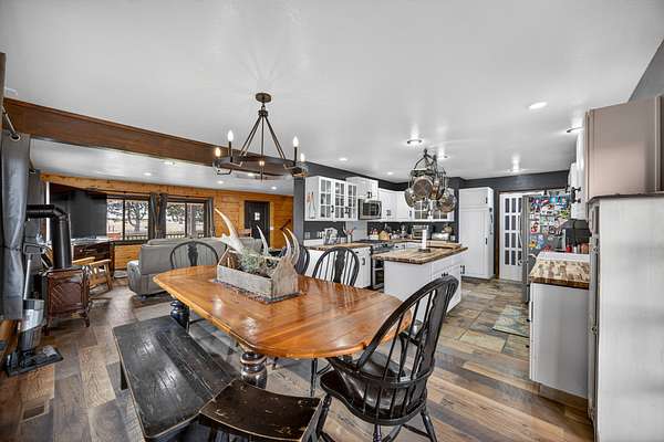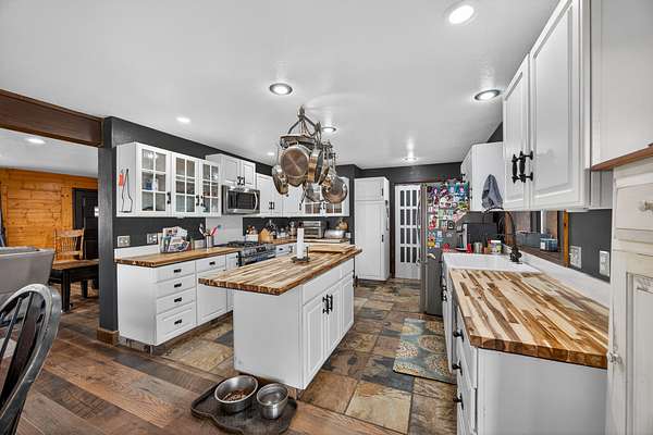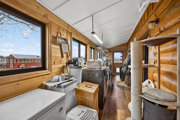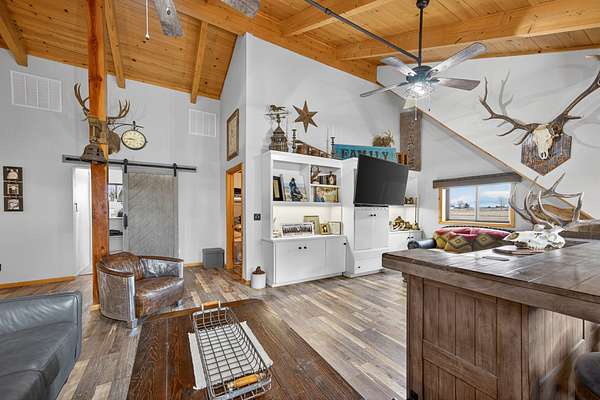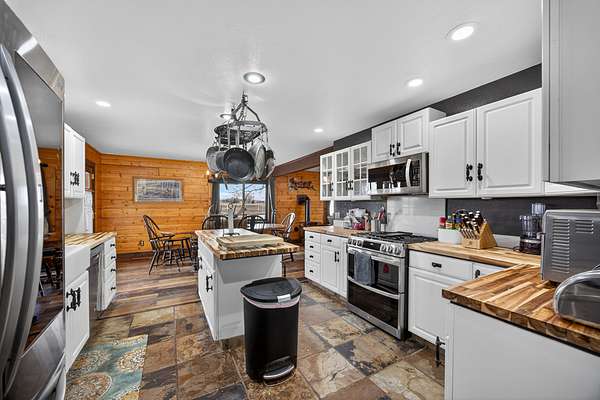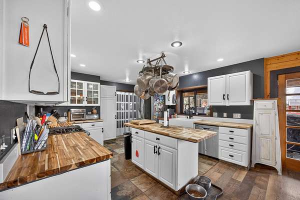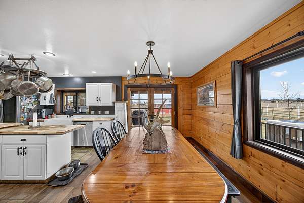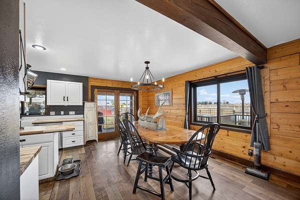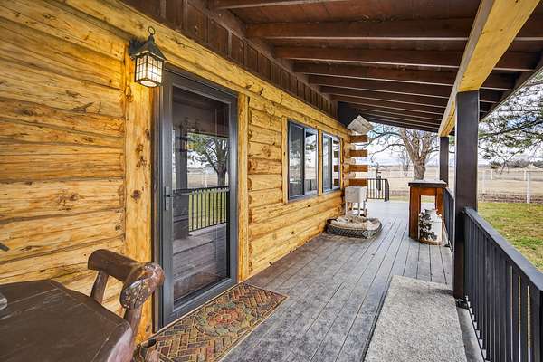 Exceptional horse property offering comfort, function, and turnkey equestrian amenities on 6+- irrigated acres. This beautiful log home is 4-bedrooms, 2.5-baths with approximately 2,487 sq ft of living space, with a fully remodeled upper level, updated bathrooms, new flooring, fresh paint, butcher block countertops, and new Anderson windows throughout. Enjoy outdoor living on the new patio and deck with updated railing, plus the added bonus of a brand-new greenhouse.