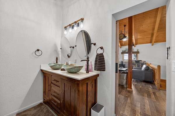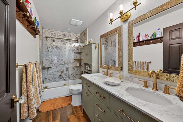 Downstairs: Master bedroom with full bath + remodeled half bath