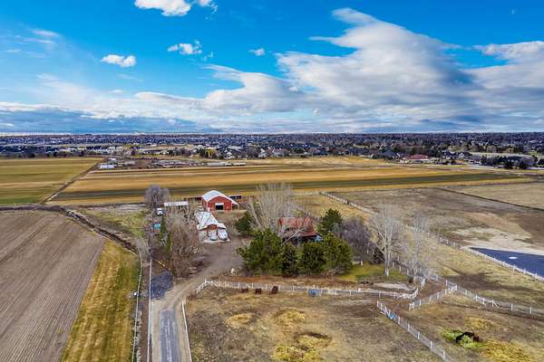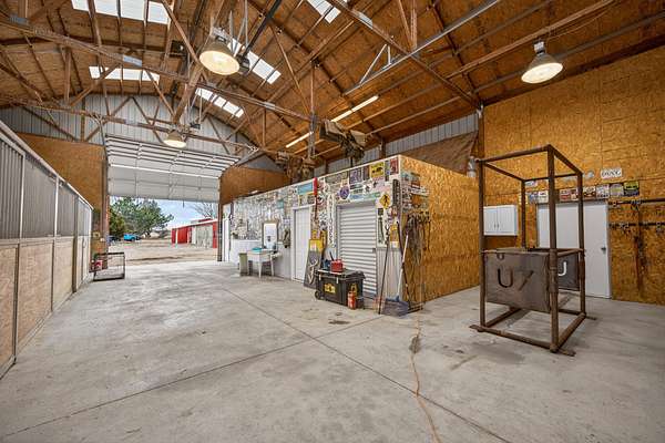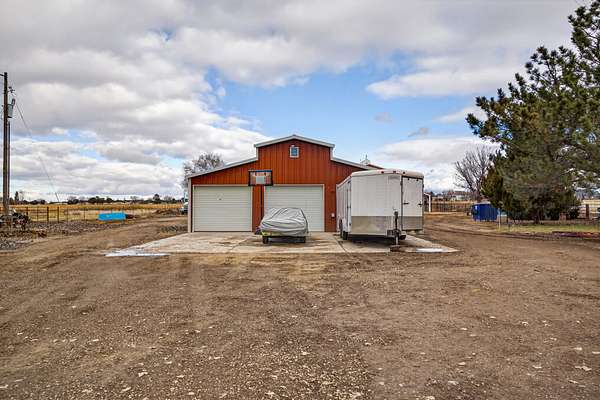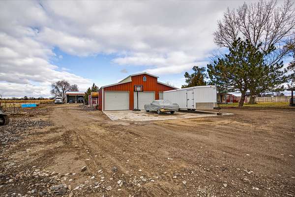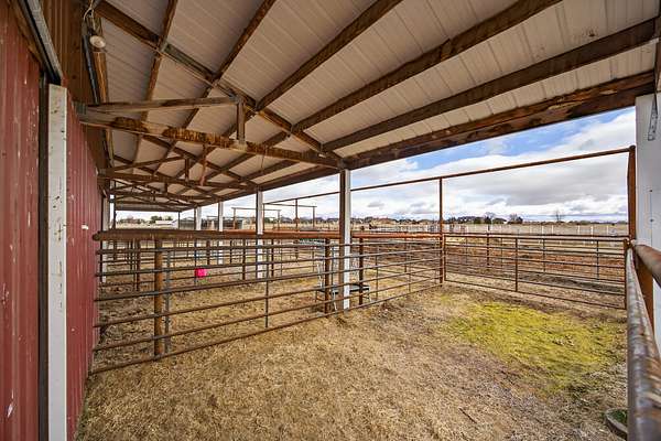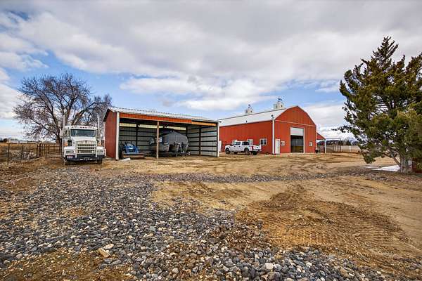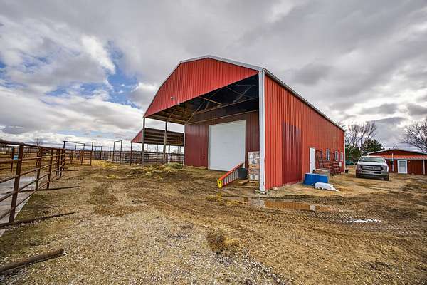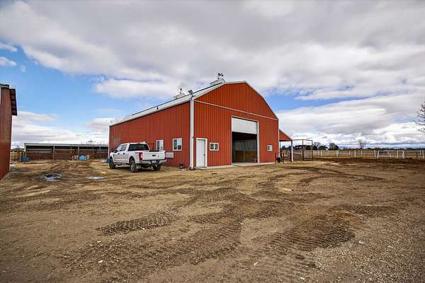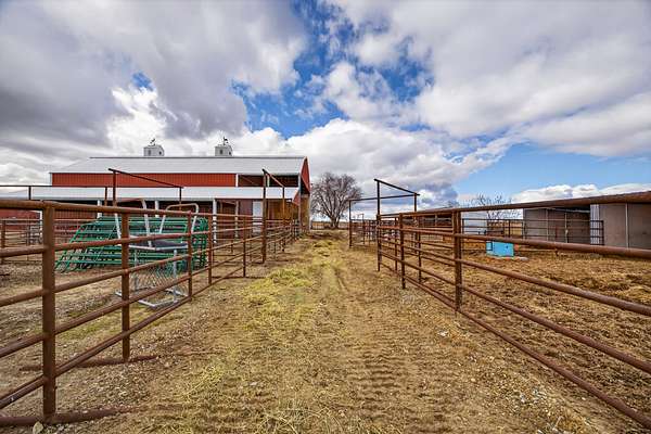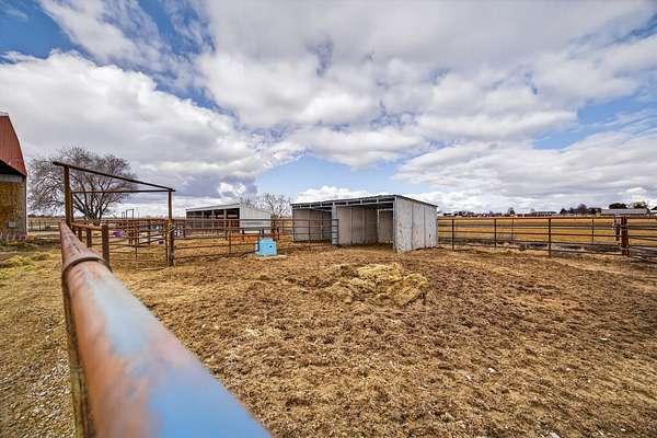 Equestrian improvements include a 4-stall barn with indoor/outdoor runs, heated tack room and office, brand new corrals, automatic livestock waterers, multiple pens and shelters, equipment storage, and full perimeter and cross-fencing. The property is fully irrigated with underground piping and irrigation water is provided by the New York Canal. A detached 3-car garage and separate studio apartment with full bath and kitchen complete this versatile and highly desirable setup. A rare opportunity for horse enthusiasts seeking a turnkey property with exceptional infrastructure. Conveniently located across the road from the 10-Mile Riding Club & Arena.