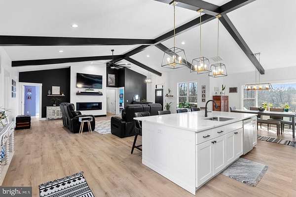 - Ceiling Fan(s), Combination Dining/Living, Combination Kitchen/Dining, Combination Kitchen/Living, Dining Area, Entry Level Bedroom, Exposed Beams, Island Kitchen, Open Floor Plan, Primary Bath(s), Recessed Lighting, Tub Shower Bathroom, Upgraded Countertops, Walk-In Closet(s)
