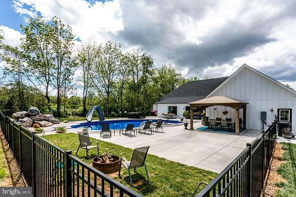 DRASTIC PRICE REDUCTION! Seller is ready to relocate! Stately custom built farmhouse style home that meets the needs of today's lifestyle with one-level living including a detached 1-bedroom apartment with 660 square feet! This home boasts quality features throughout with an open concept for the family living, cathedral/beamed ceiling, cozy gas fireplace and accent wall, gorgeous kitchen with white shaker cabinets, quartz countertops, oversized breakfast island, dining space of15'8"x9'; coffee center. There are 4 bedrooms, 3 full baths, one bedroom currently used as office/study with a hide-away multipurpose room. The 3rd full bath is off the office/bedroom and has access to the rear patio and pool area. The primary suite offers lots of natural light with spacious 9'7"x13'10"en suite and a walk-in closet! Step out of the sunroom to the rear outdoor living space where you will find a family size in-ground heated pool, grand patio and entertainment area. Exterior is LP Smart Siding. The property also offers a 44'x46' detached garage & carport equipped with all you need for your RV hookup. Above the garage is the 1-bedroom apartment with private entrance! (see attached documents for more details)