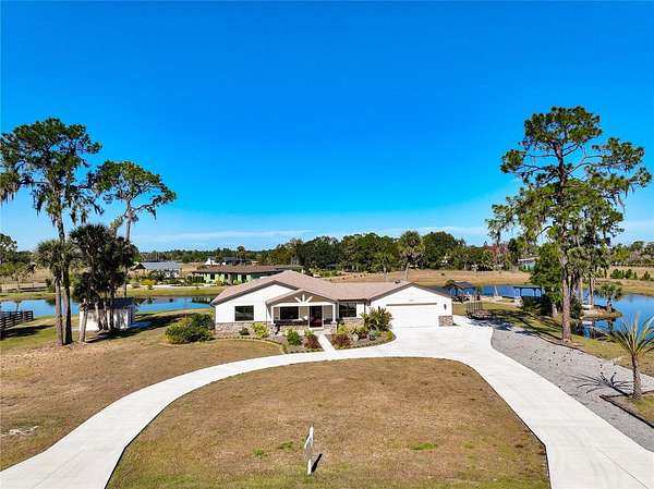 Under contract-accepting backup offers. One or more photo(s) has been virtually staged. * Priced under appraised value * This beautiful home boasts 1.6 acres in gated, waterfront community. Bring your boat and access the full Harris Chain of Lakes from the private community boat ramp. Store your boat / RV on your lot. Cruise to brunch, events, dinner at Historic Mt Dora, City of Tavares, Eustis, Leesburg. So may waterfront dining and boutique shopping options, all by boat! Built in 2022, this is a custom home with 3 bedrooms, office and 2.5 baths. Great room dimensions and high quality finishes. *** Sweeping chef kitchen, stainless steel appliances including double convection oven, induction cooktop, self-trim farmhouse sink, large island plus expansive breakfast bar and extensive storage options. Quartz countertops throughout and marble tile features. Hard wood floors and porcelain tile, high ceilings; 8ft doors and crown moulding. Oversize 710sqft garage (25x26). Additional 12x16 shed.