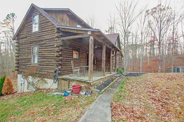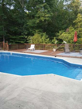 Here is an opportunity to own a serene Log cabin! A very loved & well maintained home that is nestled in 11.68 acres with 3 bedrooms & 3 full bathrooms, a basement & a gas log fireplace. Recent updates include a New Well with a water treatment system-2024, Roof-2016, & Septic pumped in 2023. Cool off those hot Summers in the pool (pool liner 2020 & pool motor 2024), plenty of outdoor space for hikes, hunting or exploring. The Wood stove is connected to the duct work for supplemental heat in the Winter, 1 car garage, kitchen appliances & shed convey. Convenient location just minutes from shopping, restaurants & schools & so much more. This home truly has it all. Don't wait!