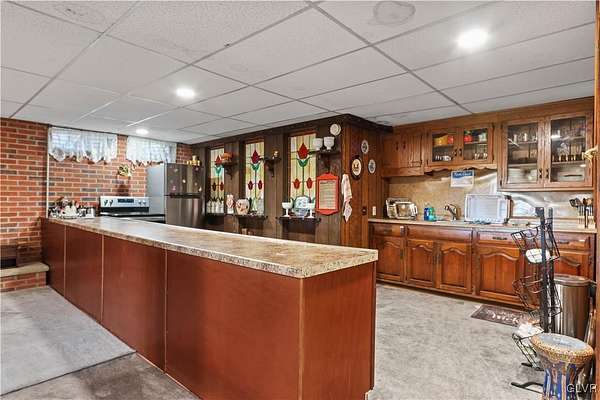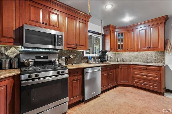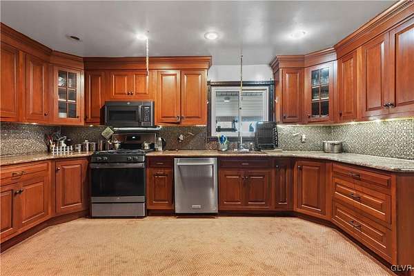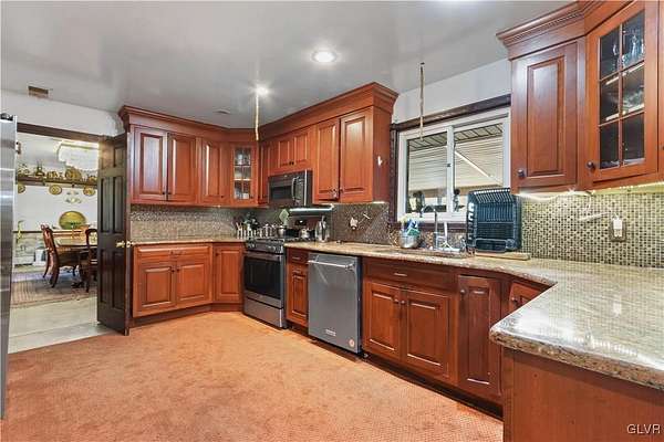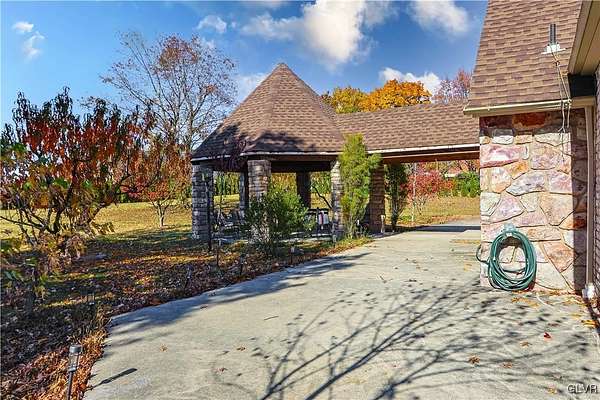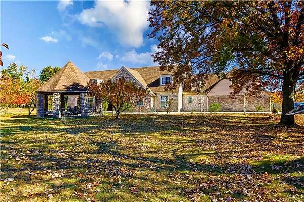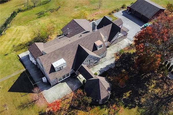 Expanded and Spacious Custom built Tudor style Cape with lots of stone and brick give it a stately feel. Situated on over Two acres of scenic Lowhill township of countryside. The current owners have expanded this home to over 5400 sf of living space plus there is a walk-out lower level which adds another 1800+ sf of finished living space. Some of the additions include- a 30x24 Sunroom/Great room. An in-law suite with LR/DR/kitchen- 2 baths and 1 or 2 bedrooms. This home works well for extended family- multi generational living. A new stone Gazebo out front is great for entertaining. Out back you will find large covered porches and patios to enjoy the rolling countryside, There is a detached 30x24 garage with a loft and a lower level garage, 20x12 storage shed, chicken coop and more!