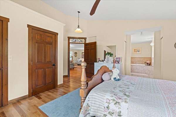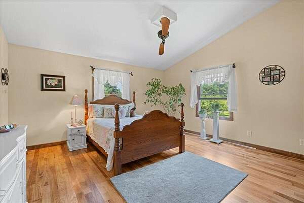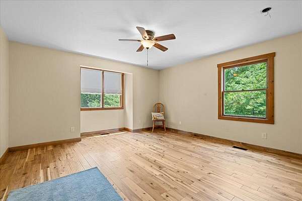 Welcome to this beautiful 4-bedroom, 2-bathroom home nestled on 14 partially wooded acres-offering privacy, space, and beauty abroad. Inside, you'll find gleaming hardwood floors and a warm, inviting layout. The primary suite is a standout, featuring two walk-in closets and a private bath, creating a true owner's retreat. Each additional bedroom is generously sized, with ample natural light and storage. Step outside and enjoy the best of country living-open spaces, wooded ground for exploring full of great habitat for wildlife. The property includes a huge two-story barn with its own foundation, high grade residential windows and with 12 foot ceilings down stairs and 10 foot upstairs, the barn could easily be converted to a barndominium! Call today for your private tour!