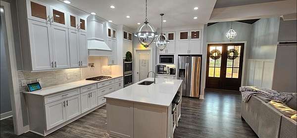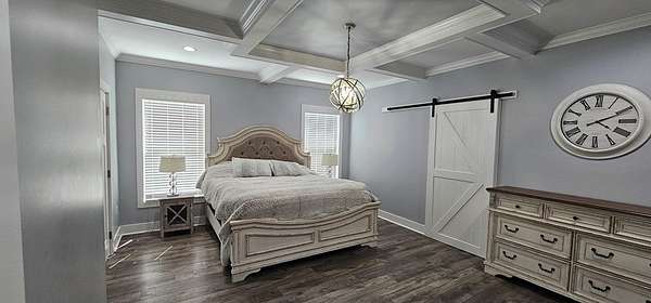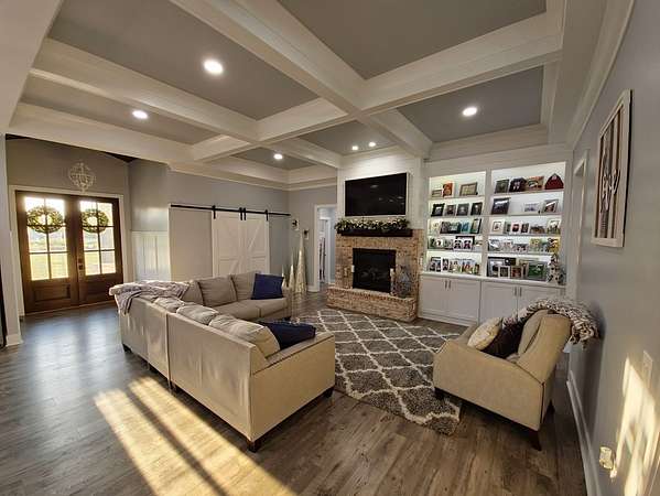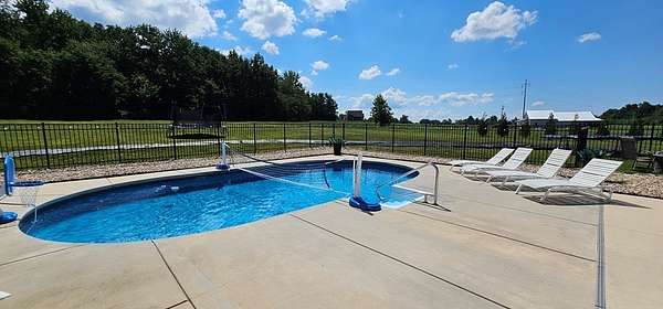 Stunning Modern Farmhouse on 5.71 Acres with Pool & Luxury Finishes. Built in 2021, this 3,542 sq. ft. estate offers the perfect blend of modern design and timeless comfort. Featuring 4 spacious bedrooms and 3 full bathrooms, the home is thoughtfully designed with soaring 10-11 ft. ceilings and a coffered ceiling in the living room that adds elegance and depth. The chef's kitchen is a true showstopper, complete with quartz countertops, abundant cabinetry, oversized island with seating, and stainless appliances and a double oven. The bathrooms feature marble countertops and a large walk-in tile shower, combining everyday function with spa-like luxury. Step outside to your private oasis - a sparkling in-ground pool, fenced backyard, and an outbuilding perfect for storage or easily convertible into a pool house. For added convenience, the property includes RV storage with a 50-amp hookup, making it ideal for travelers or guests. This property combines modern luxury & country living.