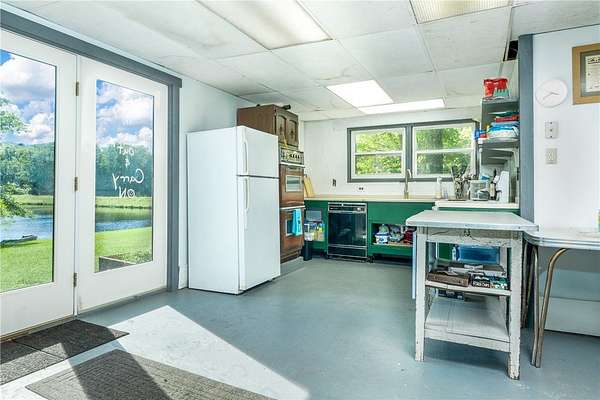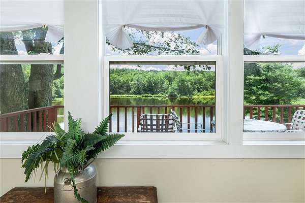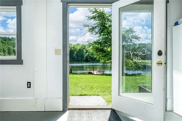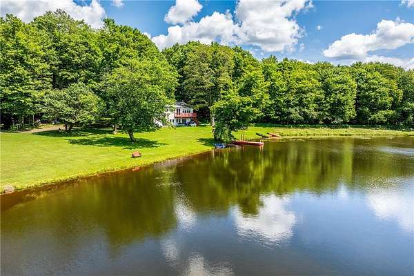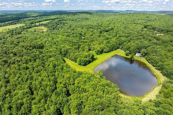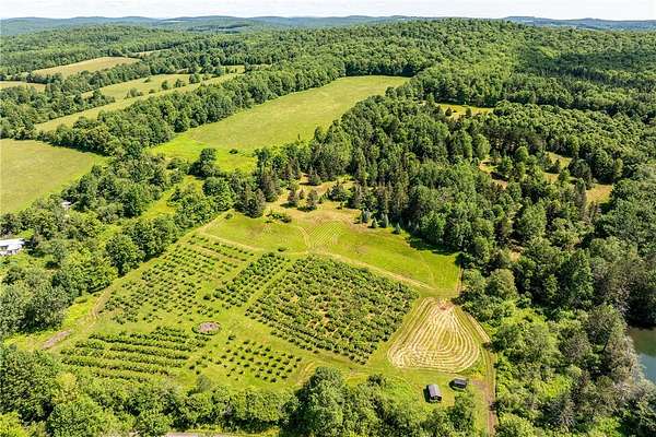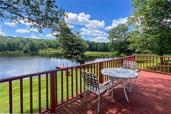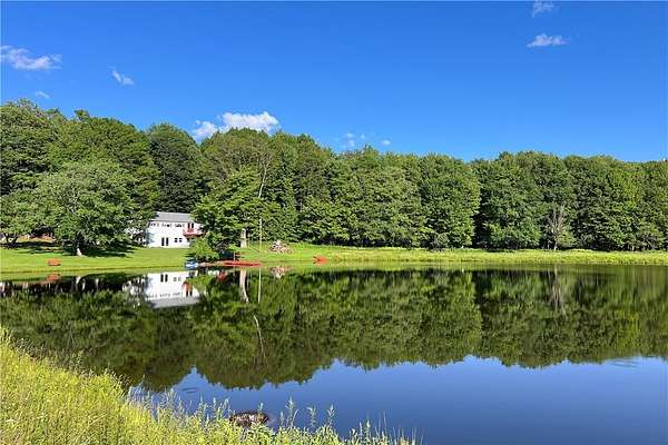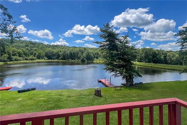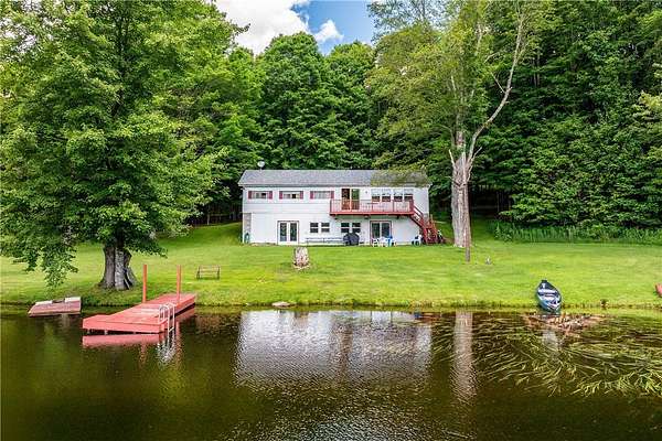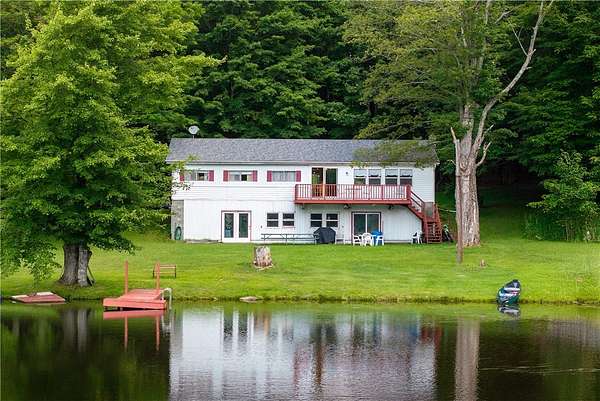 Imagine summer gatherings "at the lake," filled with laughter and the aroma of BBQ in the air. Enjoy the vibrant foliage as the temperature cools and harvest over 600 cultivated blueberry bushes on 2+ acres, producing the largest berries you'll ever see. Welcome to Braymer Lake, an exceptional retreat on 189 tax-advantaged acres, blending tranquility and adventure. This unique property features stone walls, wooded groves, open fields, and miles of trails, with over 106 acres enrolled in the NYS 480A Forestry program. At its heart is a picturesque 2.6-acre private lake, stocked with trout, perch, and bass. With a recently updated dam and spillway, peace of mind for generations to come is assured. The lake's unique shape is perfect for boating, paddleboarding, and fishing, guaranteeing endless enjoyment. The spacious 5-bedroom, 2.5-bathroom home has been a cherished family gathering spot since the 1970s. The main floor features a gas stove and dual oven kitchen, complemented by a second "party kitchen" on the lower level with an electric stove and dual ovens. This home is ready for your personal touch. The main level is heated with a propane hot air furnace, but a cast-iron wood-burning stove on the lower level could suffice. This level also boasts a newer washer and dryer and a half bath, with dual doors opening to a lower-level patio and dock only 50 feet away-perfect for hammocks, lawn chairs, and volleyball. Explore trails leading to two additional stocked ponds for fishing or simply enjoying nature's serene beauty. ATV or hike through the Catskill forest for great hunting opportunities. If you've dreamed of your own blueberry farm, with 600 bushes of different varietals, this is the perfect property for a commercial venture. Experience relaxation on your private deck overlooking the lake. This property offers endless possibilities for memorable gatherings and outdoor adventures. Just 10 minutes from Delhi and 20 from Oneonta, and under 3 hours from the GWB, Braymer Lake is your new Catskill escape. Don't miss the chance to claim this serene retreat as your own!