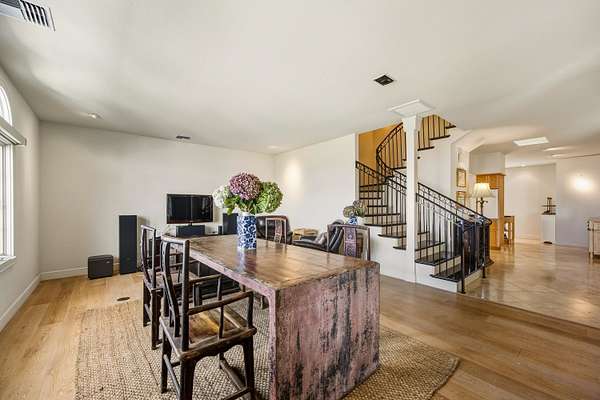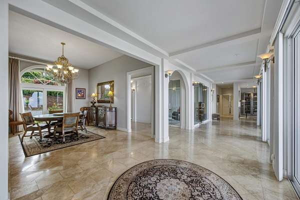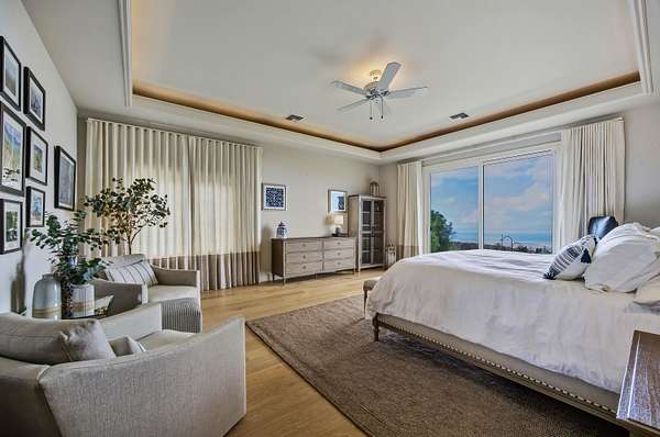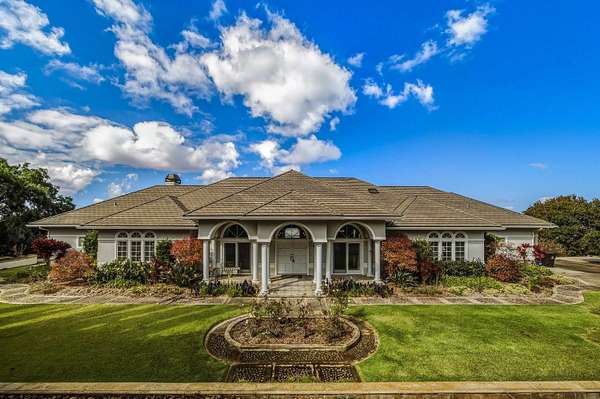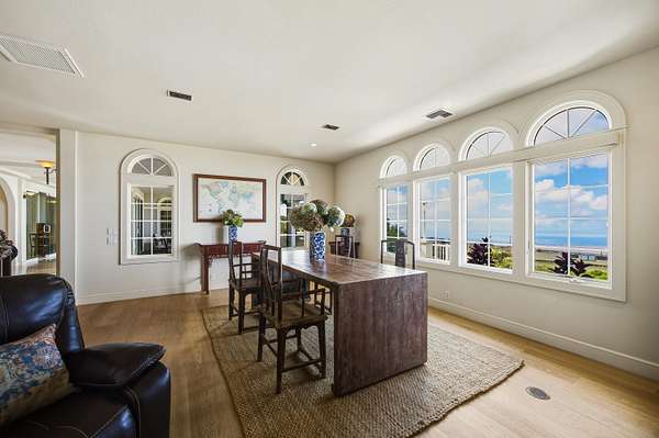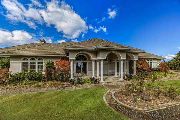 Perched in coveted Lower Kula, this Mediterranean-inspired villa commands a truly superb setting with breathtaking Coast-to-Coast VIEWS! Tucked behind a private, gated entry, the property offers rare seclusion and quiet enjoyment, surrounded by natural beauty, open skies and an ideal climate. Architectural details define the home's timeless elegance. Arched windows frame sweeping vistas, an exquisite roofline crowns the residence, and a columned entry creates a grand sense of arrival. Inside, travertine tile and warm oak floors set a refined yet welcoming tone. TWO spacious living areas provide flexibility for both intimate gatherings and larger entertaining and are complemented by a formal dining room, ideal for hosting memorable gatherings. A glassed-in study provides a quiet, light-filled space for work or reflection, while split air conditioning ensures comfort throughout the home. The generous primary suite is a private retreat, featuring immense VIEWS that stretch to the ocean and a giant walk-in closet. Polished wood stairs lead to cozy bedrooms, offering comfort and privacy for family or guests. Outdoor living is equally compelling, with a large covered deck perfectly positioned to take in stellar, ocean-facing VIEWS- ideal for sunrise coffee, sunset dinners, or simply savoring the serenity of this remarkable Lower Kula estate.