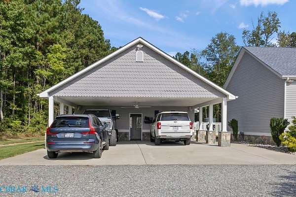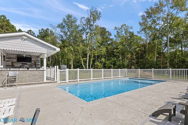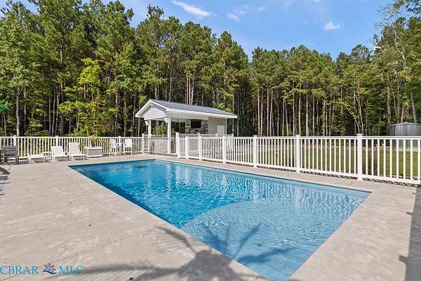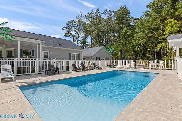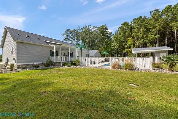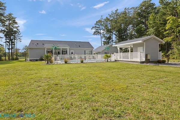 Welcome to a beautifully designed home offering 2,048 square feet of thoughtfully laid out living space. This three-bedroom, two-bathroom property is set on three private acres and offers a park-like setting ideal for both relaxation and entertaining. Built in 2018, this modular home combines modern features with practical functionality. An open floor plan connects the living, dining, and kitchen areas, creating a spacious layout that's perfect for daily living and hosting guests. The kitchen seamlessly extends to outdoor living with a full outdoor kitchen, covered porches, and an inviting inground saltwater pool-great for warm summer days. An additional outdoor half bath offers added convenience for poolside gatherings. The primary bedroom includes ample space and light, with a layout that promotes comfort and convenience. Throughout the property, you'll find thoughtful upgrades like a whole house generator, irrigation system, and landscape lighting that enhance daily living and curb appeal. A covered carport provides sheltered parking, and the expansive yard offers endless possibilities for gardening, recreation, or quiet moments in nature. Located near Mathews County Parks and Recreation and Mathews High School, the home sits within convenient reach of local amenities. This property is designed for those who appreciate both indoor comfort and outdoor enjoyment, offering a peaceful setting with modern touches to meet your everyday needs.