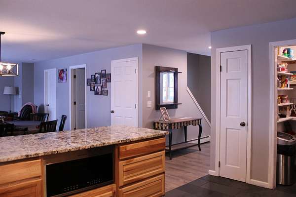 Nestled on a paved town road in Albany, VT, this impeccably maintained 5-bedroom, 3-bath home on 5 acres has been thoughtfully upgraded and is offered at $509,000. Recent improvements include a reimagined first-floor layout with added mudroom, walk-in pantry, redesigned and updated kitchen, tile and laminate vinyl plank flooring, finished basement, and fresh paint. Building on prior updates like new roof, newer windows, and repairs, it's truly turn-key. Enter from the heated two-car garage into the welcoming mudroom, showcasing crisp organization. The stunning kitchen features natural light from windows and new slider to covered porch, top appliances, ample counters, custom cabinets, and bar—flowing seamlessly into dining and living areas for connected gatherings. Main floor includes a flexible bedroom/office with full bath. Upstairs: luxurious primary suite with walk-in closet, Jacuzzi tub, 3/4 shower; three more bedrooms share another full bath. Finished basement offers recreation/storage space with bulkhead access. Outside, enjoy Vermont serenity: views, nature, and sunsets from the back deck. There's more storage in the barn (w/power), outbuilding and shed. Minutes to Craftsbury and Greensboro. Ski and Bike at nearby Jay and Stowe. Education and development is conducted at Albany Community School pre-K through 8, and Lake Region Union High School with pickup and drop off right at the end of the driveway. While in grade 4, a free learn to ski and ride program begins with the instructors at Jayand runs through to grade 8!