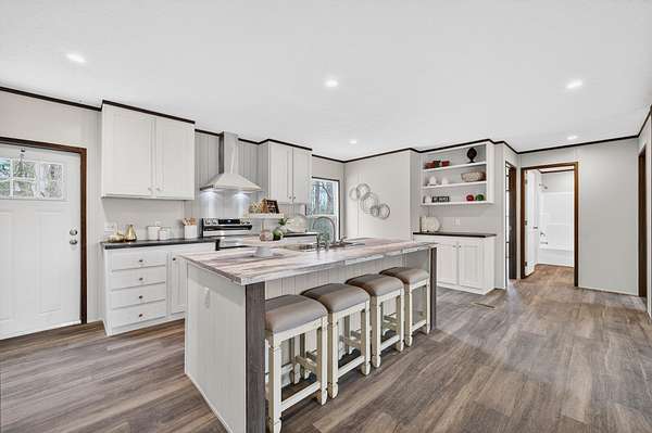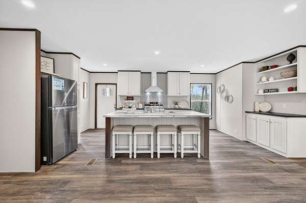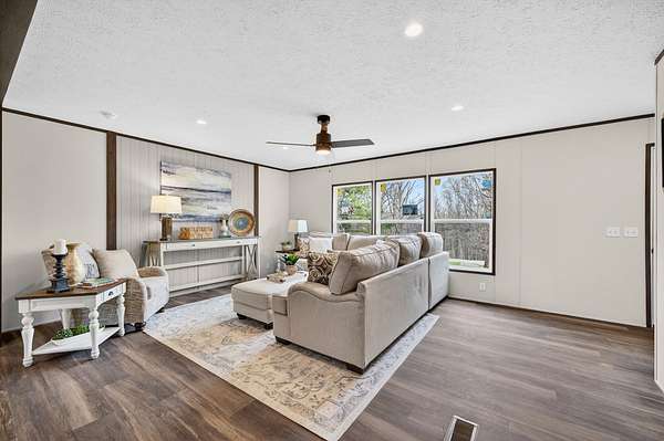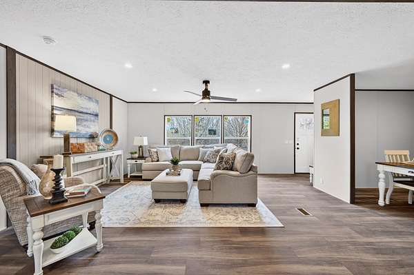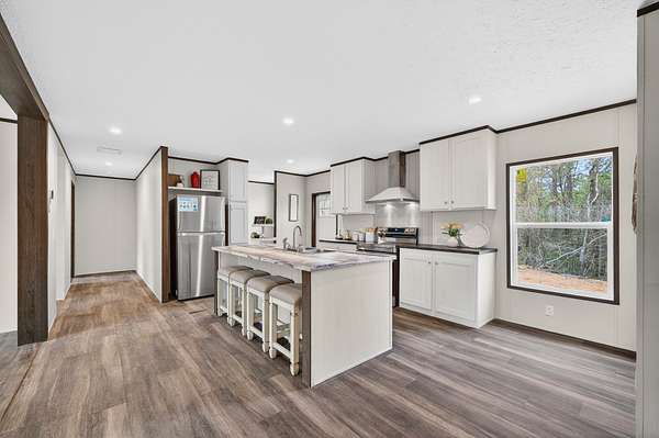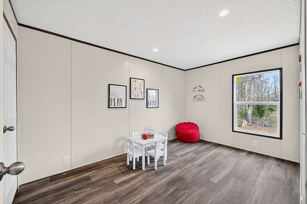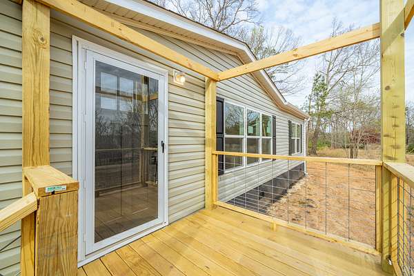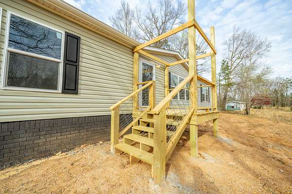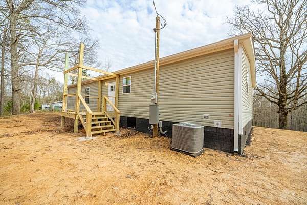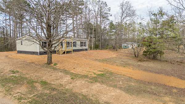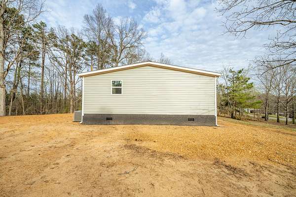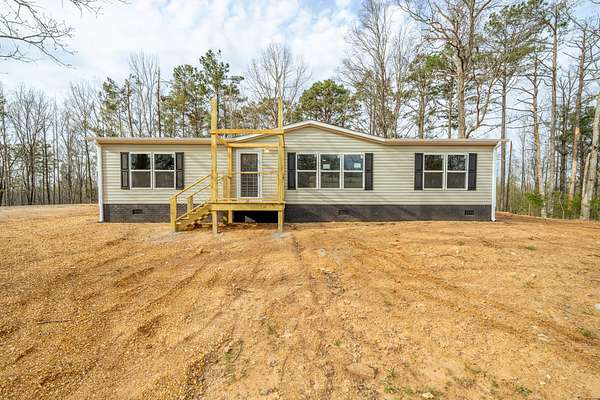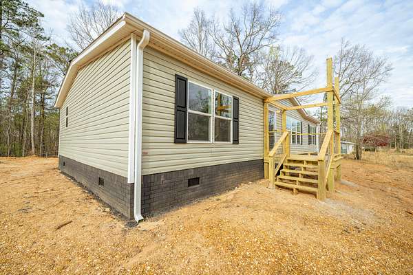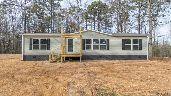 Brand new 3-bedroom, 2-bath manufactured home situated on a permanent black brick foundation and offering approximately 1,680 (+/–) square feet of living space. This property features 5.98 acres of unrestricted land with a recent survey on file, providing both privacy and flexibility for future use.The home showcases an open-concept layout highlighted by a beautiful accent wall in the living room, creating a welcoming focal point for the main living area. The kitchen is designed for both style and function with a large island, built-in shelving, and stainless steel appliances, along with a separate formal dining area for gatherings.The spacious primary suite includes a walk-in shower, separate soaking tub, dual vanities, and two closets, offering comfort and convenience. A unique feature of this property is the additional neighboring parcel included in the sale, already equipped with a septic tank, water lines, and water meter, making it ready for another home site or future expansion. Both front and rear porches have been added and structured to allow the new owner to customize and finish them to their personal preference. The home also includes a transferable home warranty through Clayton Homes for added peace of mind. Enjoy county taxes only while still being conveniently located near schools, shopping, and everyday amenities. Buyer to verify all information. All information is deemed accurate, but is not guaranteed. Furniture and decor are for staging purposes only and will not remain with the home. Schedule your private showing today!