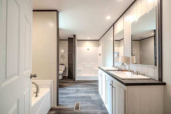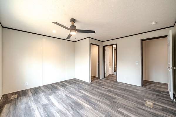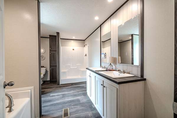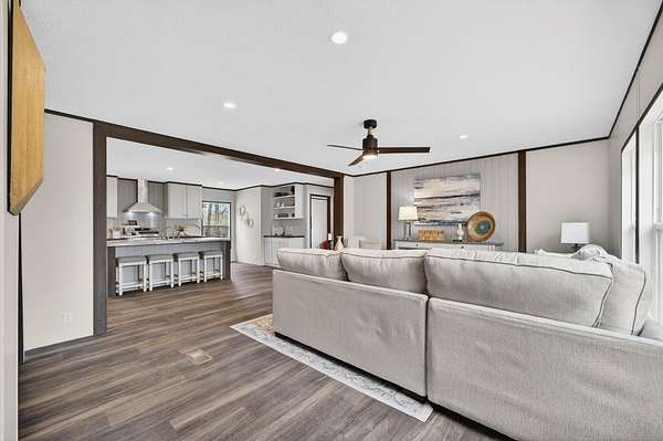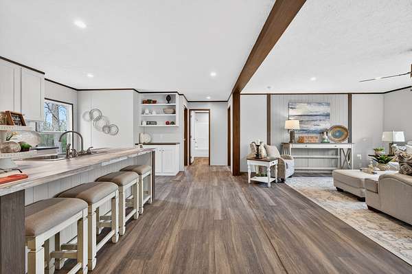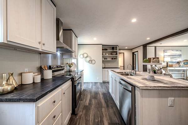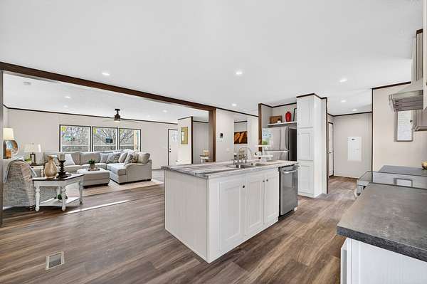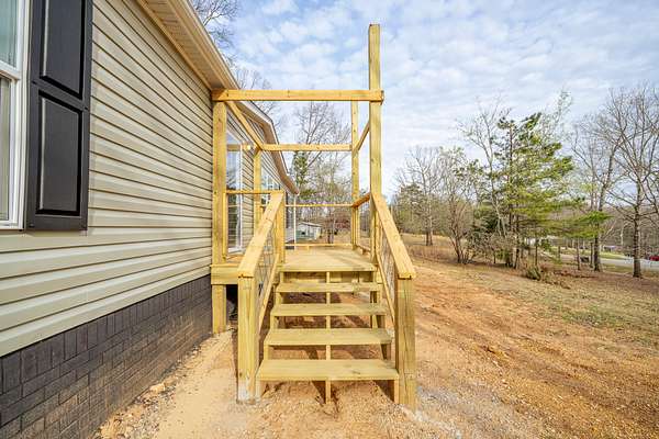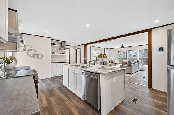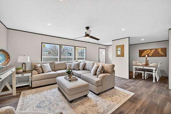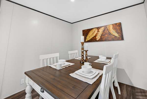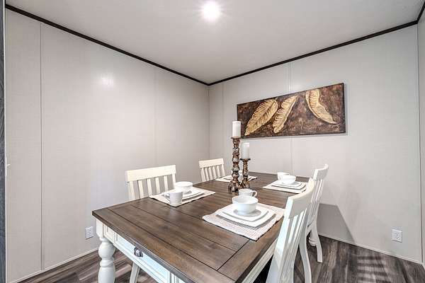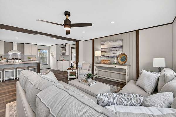 Brand new 3-bedroom, 2-bath manufactured home situated on a permanent black brick foundation and offering approximately 1,680 (+/–) square feet of living space. This property features 5.98 acres of unrestricted land with a recent survey on file, providing both privacy and flexibility for future use.The home showcases an open-concept layout highlighted by a beautiful accent wall in the living room, creating a welcoming focal point for the main living area. The kitchen is designed for both style and function with a large island, built-in shelving, and stainless steel appliances, along with a separate formal dining area for gatherings.The spacious primary suite includes a walk-in shower, separate soaking tub, dual vanities, and two closets, offering comfort and convenience. A unique feature of this property is the additional neighboring parcel included in the sale, already equipped with a septic tank, water lines, and water meter, making it ready for another home site or future expansion. Both front and rear porches have been added and structured to allow the new owner to customize and finish them to their personal preference. The home also includes a transferable home warranty through Clayton Homes for added peace of mind. Enjoy county taxes only while still being conveniently located near schools, shopping, and everyday amenities. Buyer to verify all information. All information is deemed accurate, but is not guaranteed. Furniture and decor are for staging purposes only and will not remain with the home. Schedule your private showing today!