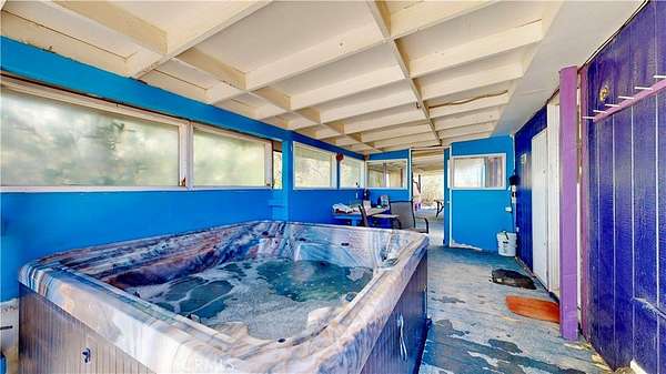 This is more than just a home--it's a lifestyle destination. Set on 2.83 acres, this unique and versatile property features a 1,152 sq ft, 3-bedroom, 2-bath home with a split floor plan, vaulted ceilings, and clerestory windows that fill the living space with natural light. The inviting living room flows into a charming kitchen with a dine-up bar and built-in china hutch, making it ideal for gatherings. The primary suite offers a private bath, while two additional bedrooms and a second bath sit on the opposite side of the home. Indoor laundry and a wide, covered veranda with a spa and water feature complete the main home's offerings.