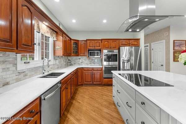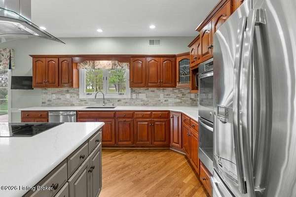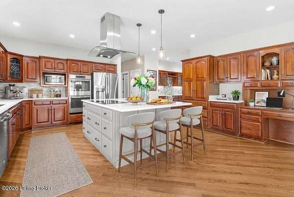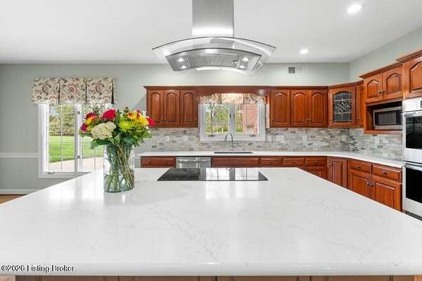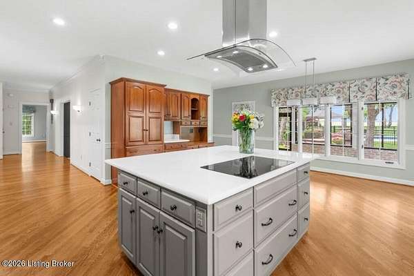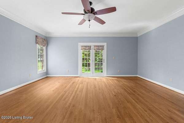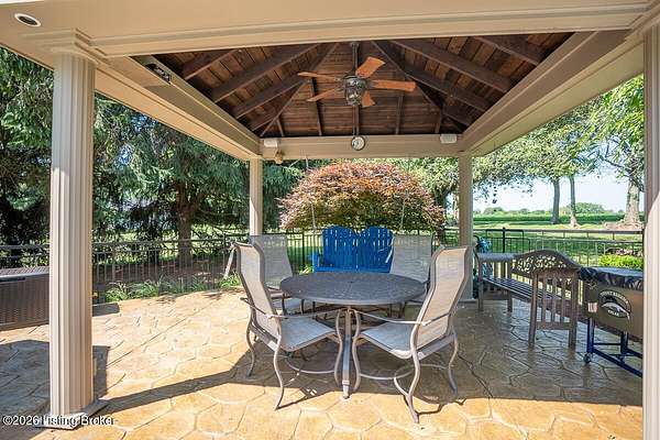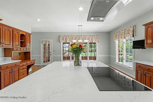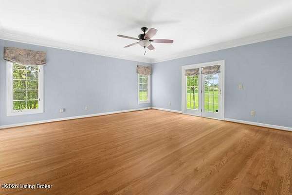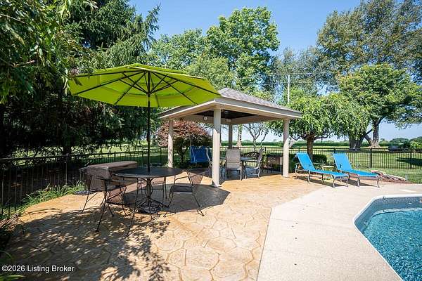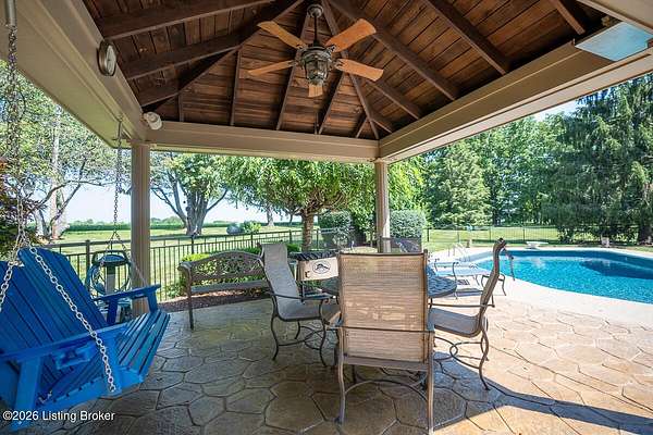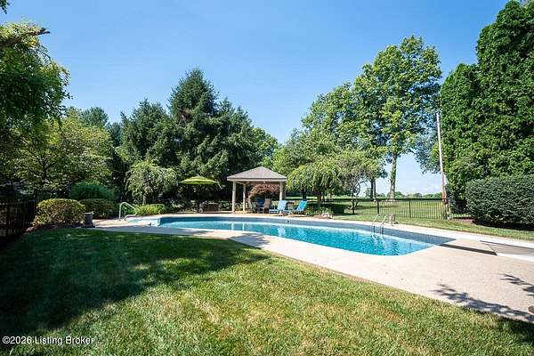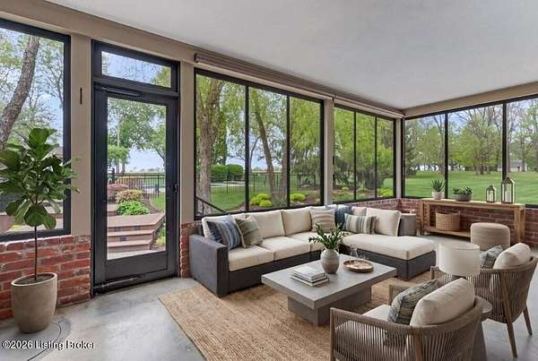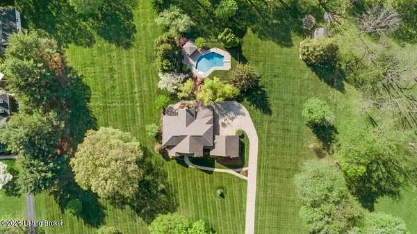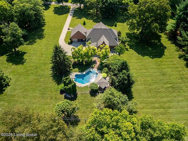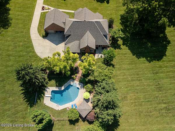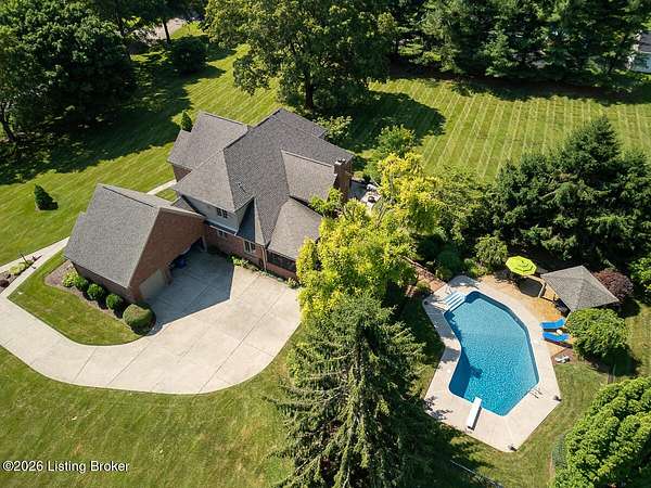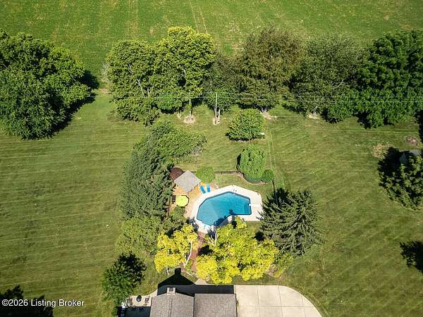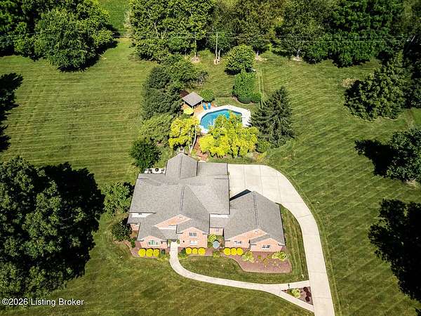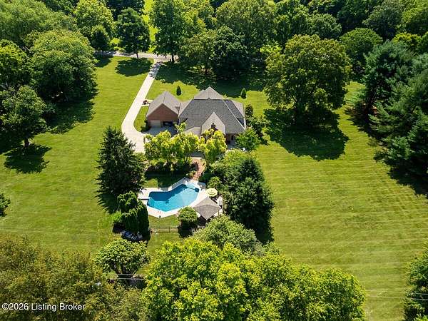 Tucked just over the Oldham County line in Constantine, this custom-built, one-owner home sits on three beautiful acres and offers over 5,600 finished square feet of thoughtfully designed living space. Built by well-regarded builder Ron Wolford, the home reflects quality craftsmanship, timeless design, and meticulous care throughout its 35 years. The light-filled interior features four bedrooms, including a first-floor primary suite, an updated kitchen, and exceptional custom millwork that adds warmth and character. Expansive windows frame peaceful views in every direction, creating a seamless connection to the surrounding landscape. The finished lower level adds approximately 1,525 square feet of additional living space, offering flexibility for entertaining, recreation, or guest accommodations. Outside, the stunning in-ground pool is the centerpiece of the private setting-perfect for summer gatherings or quiet evenings at home. In fantastic condition and ideally located with an easy commute to Louisville, this is a rare opportunity to own a truly special property in a sought-after setting.