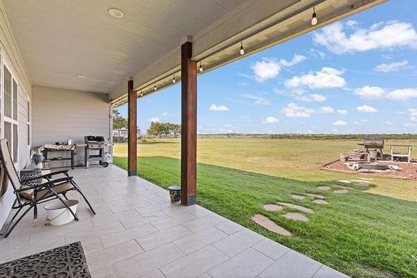- Covered Patio/Porch, Fence, Fire Pit, Rain Gutters