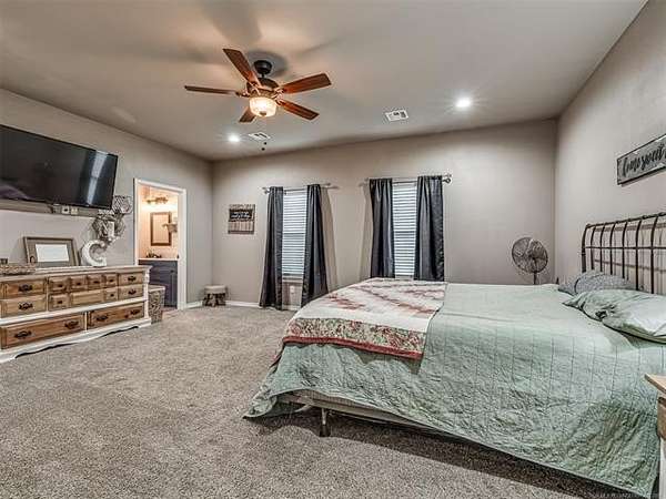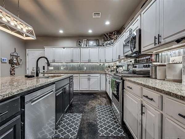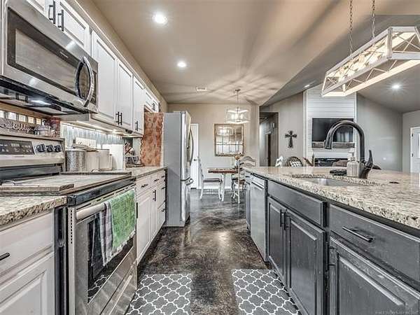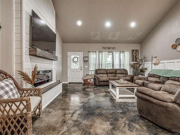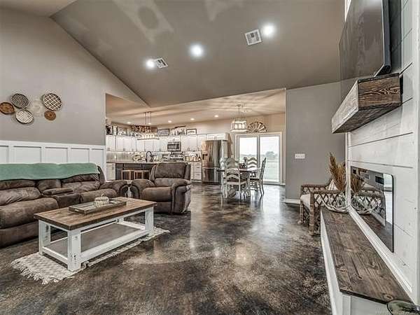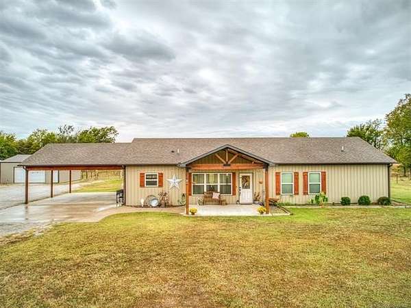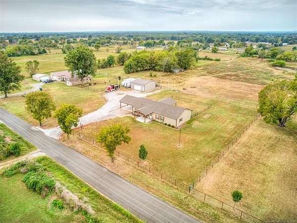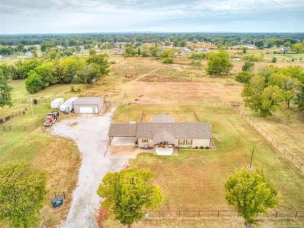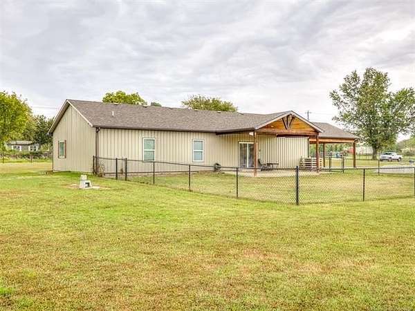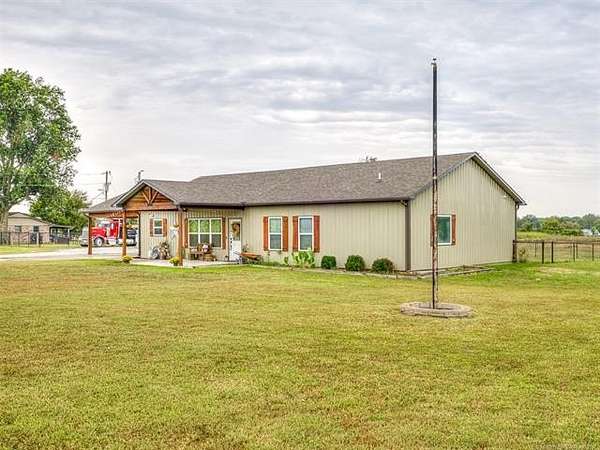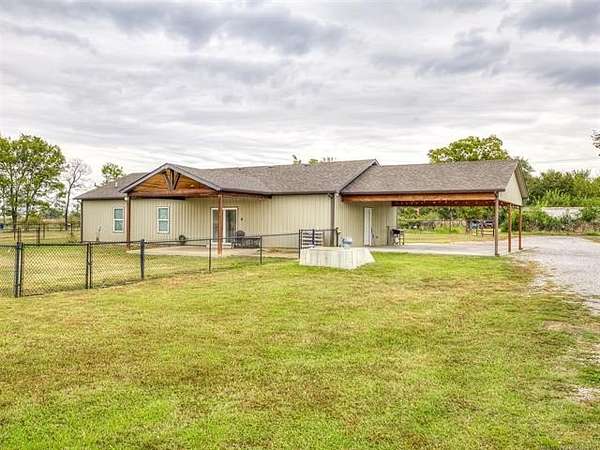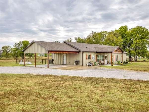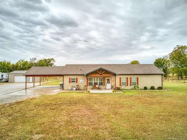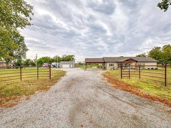 Your Oklahoma Dream Awaits! Welcome home to your own slice of country paradise! This custom-built farmhouse sits on 5 peaceful acres where open skies, rolling land, and modern comfort come together perfectly. With all your love for farm animals welcome, you can finally live the farm life you've been dreaming of -- without giving up style or convenience. Beautiful custom finishes throughout, thoughtfully designed to blend rustic charm with modern luxury. Foam insulation keeps your utility bills low and your comfort hight, no matter the season. For those not really feeling the chicken farmer life, how about an insulated 30x30 shop with electric for all that tinkering and summer toy storage? Whether you're sipping morning coffee on the porch as the sun rises or unwinding in the evening while watching a breathtaking Oklahoma sunset, this property offers the kind of views money can't buy! Plenty of space for your animals, a place to catch a little afternoon fishing, and a life that moves at your own pace. Country living never looked -- or felt -- this good!