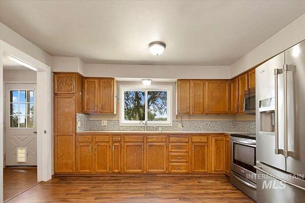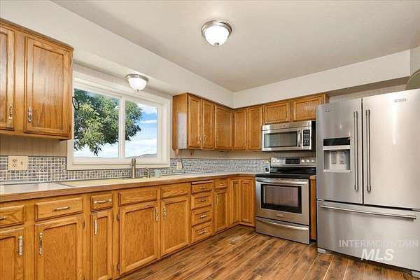This rare horse property features a charming 3-bedroom, 2-bathroom farmhouse on 5 irrigated acres, boasting panoramic valley views. There are no CCR's or HOA, ensuring maximum freedom. Outbuildings galore! The property includes a fully insulated 30' x 80' shop with 5 open bays and 220 power. You'll also find two hay barns (30' x 60' and 30' x 72'), a 20' x 50' horse barn, and a 12' x 40' pipe corral loafing shed with a 100-gallon automatic heated water trough. Additional amenities include a concrete block dairy barn, two 10' x 14' storage sheds/tack rooms, a large pipe corral with two smaller attached corrals, an 18' x 20' covered dog run, and a chicken coop. The property offers plenty of space to build another home of any size, and the existing structure can be utilized as an Accessory Dwelling Unit (ADU) and benefits from a private well and septic system, contributing to a very low cost of living. Ample irrigation water is available, making this property a true labor of love.