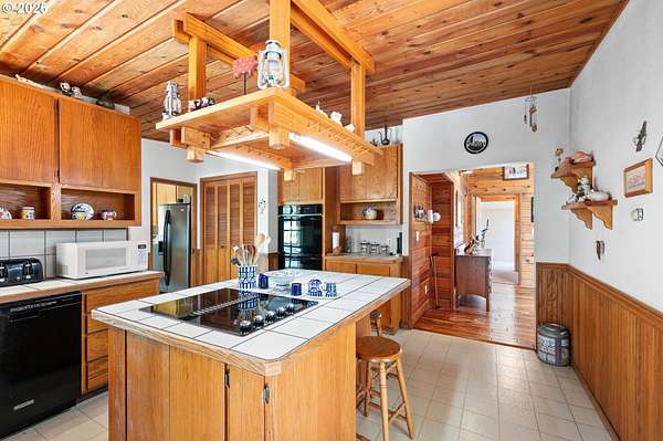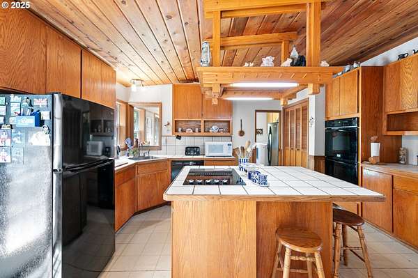 - Builtin Oven, Cooktop, Dishwasher, Down Draft, Free Standing Refrigerator, Island, Pantry