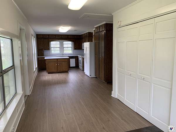 Nestled in a picturesque setting just 3.8 miles from town, this charming 100-year-old farmhouse offers the perfect blend of history and modern updates. Situated on approximately 1.5 acres, this handicap accessible 1,440 sq. ft. 3BR/1BA pier and beam home features an architectural shingle roof, fresh interior & exterior paint, and new flooring throughout. The spacious kitchen and attached covered deck provide excellent entertaining space, while the wood-burning fireplace insert adds warmth and character. The updated bathroom includes a walk-in tub/shower combo for convenience. A recently added deep well ensures reliable water access, with the option of community water as well. Enjoy peaceful mornings on the wonderful front porch, complete with a classic porch swing, surrounded by mature trees and vibrant flowering landscape. This rare, classic beauty is a timeless retreat waiting to be called home! Call listing agent for a showing today!
