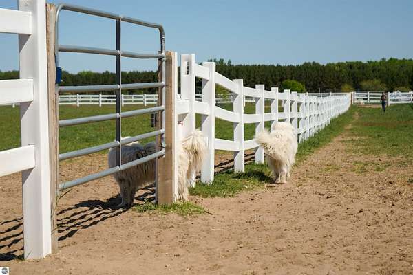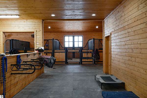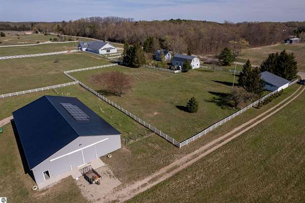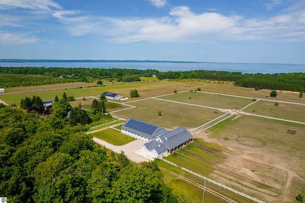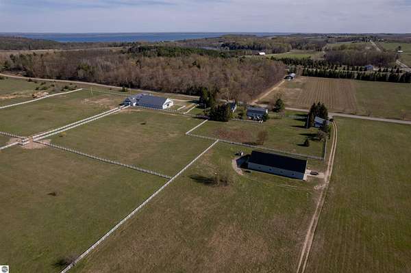 Here is your chance to own a fully working farm on the coveted Old Mission Peninsula in Traverse City, Michigan! Sprawling over 80 acres, this property has 100' of private water frontage on West Grand Traverse Bay, an operating equestrian facility, a turn of the century farm house, and multiple outbuildings. Complete with 6 purebred Great Pyrenees guard dogs. The land has 2000+ Christmas trees, 300+ lavender Vera plants, and 15 acres already in rotational crop. The equestrian barn, built in 2016, features 9 stalls, garage doors for work vehicles, saddle room, employee break room and laundry, grooming areas, and an expansive 60x100 heated dirt arena for working the horses. Walking upstairs, you will find a large office space with picture windows overlooking the stalls and a viewing balcony for the training arena. There are multiple outbuildings on the property including a newly built (2020) pole barn currently used for hay and tractor storage. Equipment, tack, and feed included with property - perfect for an experienced/aspiring farmer or equestrian enthusiast. Surrounded by beautiful Traverse City countryside with only a short walk to your own private sandy beach on the bay, this is an opportunity you do not want to miss!