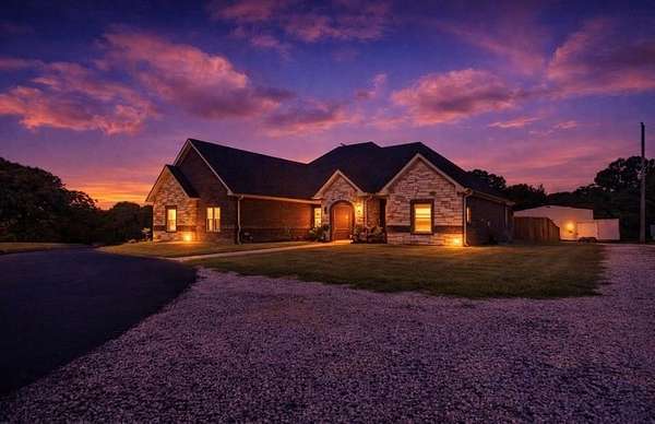 Rare find in Decatur, TX: a newer 2022 home on 2 acres with a 30x50 insulated, air-conditioned 3-bay shop--ideal for business owners, car enthusiasts, or anyone needing serious workspace. This impeccably maintained home features vaulted ceilings, warm beams, and walls of windows that fill the open-concept living space with natural light. The layout is perfect for everyday living and entertaining, with an oversized island and seamless flow to the backyard where you'll enjoy an outdoor fireplace, hot tub, and peaceful country views. The backyard is fully dog-ready with space for play and a garden. The primary suite offers a soaking tub, dual vanities, makeup desk, and large walk-in closet. A front flex room works as an office, gym, or 4th bedroom, while two additional bedrooms are privately located on the opposite side of the home. The showstopper is the cedar-wrapped, spray-foam insulated, climate-controlled shop with dual mini-splits, custom shelving, and power for serious projects--perfect for a hobbyist, craftsman, collector, or entrepreneur. Additional outbuilding for yard tools and a small seasonal pond you can customize. A rare opportunity to own a move-in-ready home with a true climate-controlled workshop on acreage in Wise County.