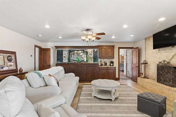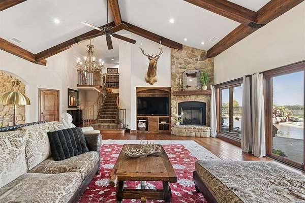 Designed for both everyday living and large scale entertaining, the property also features a fully equipped 1,800 square foot apartment or pool house ideal for guests, multigenerational living, or private quarters. Step outside to enjoy a resort style pool complete with a rock waterfall and hot tub, all positioned to take in the surrounding acreage.