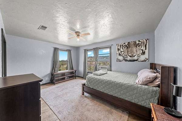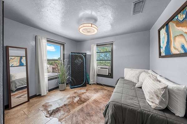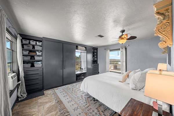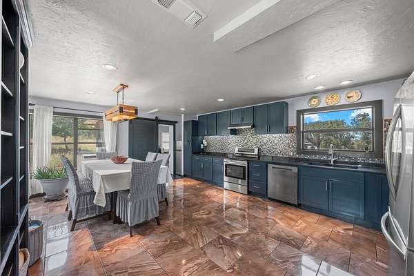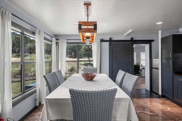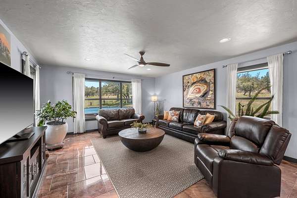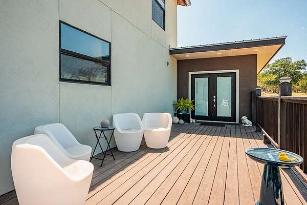 Experience refined Hill Country living in this beautifully reimagined residence blending German Contemporary architecture with timeless elegance. Completely renovated in 2015, the home showcases polished Spanish specialty tile flooring throughout, complemented by a hand-crafted wood staircase as a striking focal point. The light-filled kitchen & dining space feature sleek stainless appliances & clean modern lines designed for both function & beauty. Upstairs, the luxurious primary suite offers a bespoke built-in wall closet, accompanied by two additional guest rooms. A fourth bedroom on the main level serves perfectly as a private office paired with a thoughtfully integrated laundry area. The crowning jewel is the custom-designed third-floor Eagle's Nest--an intimate retreat ideal for relaxing, reading, or enjoying panoramic Hill Country views & wildlife. Wrapped in an upgraded 7-layer stucco exterior, this home offers superior insulation, durability, & low-maintenance living. Expansive wrap-around decking, a private above-ground pool & a secluded setting tucked deep within the property complete this exceptional offering--just 10 minutes to Fredericksburg & Enchanted Rock.