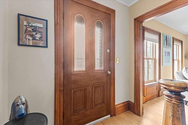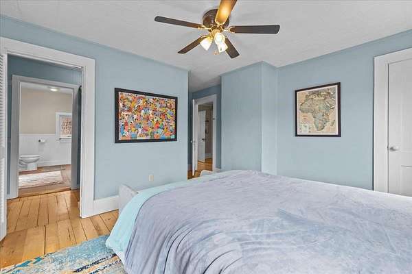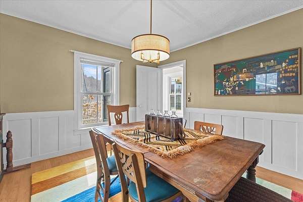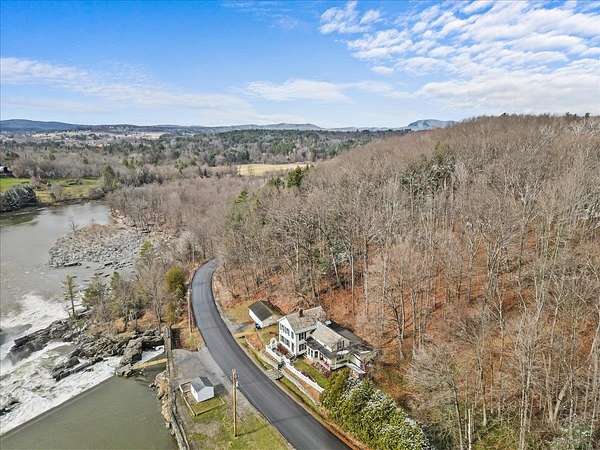 Home is NOT located in a flood zone. Nestled on 3.5 wooded acres, this charming 1869 Vermont farmhouse sits directly across from the Lamoille River and the Fairfax Hydro Falls, where the soothing rush of water sets the soundtrack to everyday life. Offering nearly 2,665 sq. ft. of living space with four bedrooms and three baths, the home gracefully blends timeless character, wood floors, period trim, slate roof with comfort and versatility. Mornings begin with coffee in a sunny breakfast nook while you watch the river sparkle across the way, the steady voice of the falls drifting through open windows. Sunlight pours across the wood flooring, creating a warm, inviting atmosphere. The flexible layout offers spaces for quiet reading, working from home, formal dining, or gathering in the expansive living room, where a beautiful fireplace anchors the space and adds evening ambiance on cooler nights. Upstairs, the primary suite is a private retreat with walk-in closet, 3/4 bath, and windows that primarily overlook the river. Outdoors, a fenced yard provides room to roam beneath shady trees, while a detached two-car garage and workshop/shed supports hobbies and storage. At sunset, sit on the porch as golden light settles over the river, the air filled with the calming rush of the falls and the gentle rhythm of Vermont's seasons.