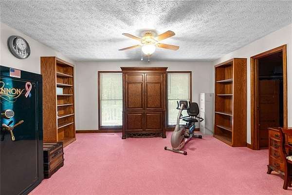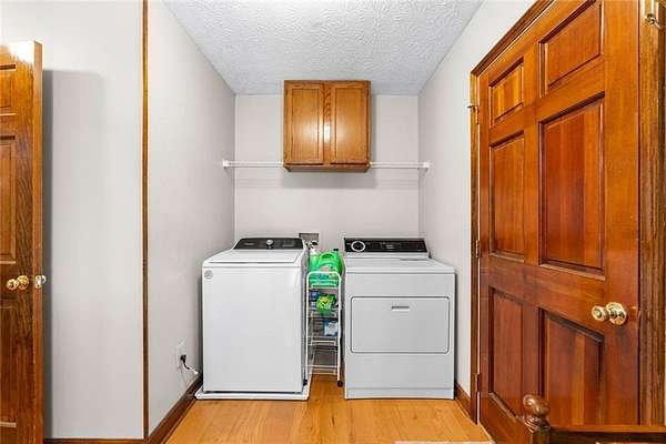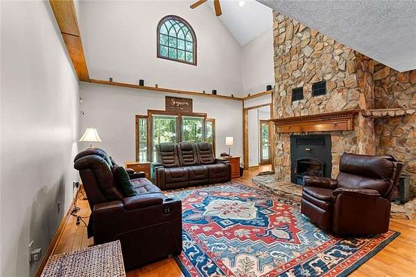 Beautifully maintained two-story traditional home sits on a serene 5 acres. Enjoy relaxing on the inviting wrap around porch. A welcoming foyer leads to a spacious great room featuring a dramatic stone fireplace and cathedral ceiling-perfect for family gatherings. The main-floor primary suite is a true retreat,boasting dual walk-in closets,whirlpool tub,separate shower and water closet,with a versatile sitting room ideal for an office or workout space. The modern kitchen is equipped with a large island,new appliances, ample pantry space, and a sunny breakfast nook, flowing into an open dining room. Covenient laundry room with included washer and dryer doubles as a mudroom,and nearby half bath adds extra functionally. Upstairs,two oversized bedrooms with dual closets share a Jack & Jill bathroom, plus extra storage and a balcony overlooking the great room. The bonus room above the 2 car garage is perfect for a home office, gym, or guest suite.