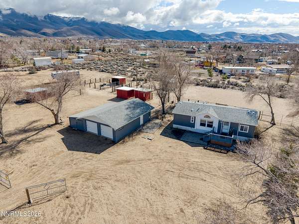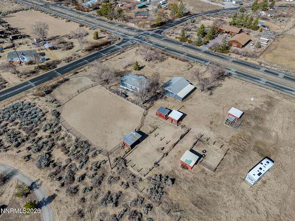 Attention Buyers or investors! Owner financing available. 2.5 acres of pure potential with breathtaking Sierra views! Live comfortably in the existing charming single-level, 3-bedroom, 2-bath home while you build your dream home, barndominium, shop, or even create a private family compound. A property survey was completed in 2025, offering added confidence for future plans. Equestrian and hobby enthusiasts will appreciate the horse arena, tack barn, and multiple outbuildings, providing space for animals, storage, or projects. Inside, the home features a cozy pellet stove, luxury wood-look vinyl plank flooring in the living area, a new kitchen island, updated bathroom fixtures, recently painted tub surrounds, new toilets, and modern lighting. Major system upgrades include a newer furnace, central air, and purification system prior to 2025 from the previous seller. Current seller installed a brand-new electrical panel and hot water heater within the last year. Exterior improvements feature a freshly painted garage and drip irrigation system to support the landscape. Conveniently located between Reno and Carson City this area offers quiet country living with an easy commute in either direction. Whether you're looking for room to grow, build, or simply enjoy wide-open space and a abundance of outdoor activities, this unique property offers endless opportunity in a beautiful setting.