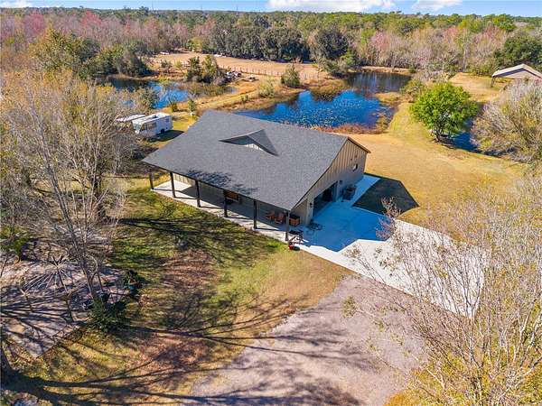 Enjoy peaceful outdoor living with a full-length covered front porch and a covered back porch overlooking the stocked pond, complete with a 10x10 fishing dock--perfect for relaxing and enjoying the setting. The property also includes a 2-car garage, 30x40 pole barn, and a brick paver grilling and hangout area under the shade. Homes offering acreage, block construction, and newer build quality are a rare find--this one delivers space, privacy, and functionality with no HOA.