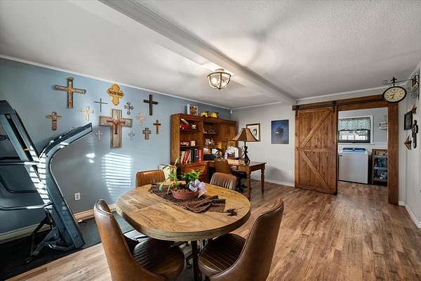 Welcome to this beautifully maintained 4-bedroom, 2-bath, 2-story home offering 2,796 square feet of comfortable living space on a 1.5-acre corner lot. With an open-concept layout and thoughtful updates throughout, this property perfectly blends modern convenience with small-town charm. Step inside to find a bright, open living area that flows seamlessly into the dining room and breakfast room, ideal for entertaining or family gatherings. The remodeled kitchen (2021) features a spacious island, pantry, and double oven--a cook's dream! Just off the living and dining area is an office, perfect for working from home or managing daily tasks. The primary bedroom and bath are conveniently located on the first floor, providing privacy and ease of access, while the second level offers three additional bedrooms and a full bath. Enjoy the stylish new luxury vinyl laminate flooring throughout the first level and abundant natural light from Andersen windows installed (2018). Outside, relax on the covered front or back patio overlooking a large, grassy backyard with a few mature trees--ideal for outdoor activities or future landscaping projects. A .5-acre corner portion of the property is zoned for commercial use, offering excellent potential for a small business, investment opportunity, or future development. The 2-car attached garage and additional 2 parking spaces in the shop offers plenty of storage and convenience. Recent upgrades provide peace of mind, including: new composite roof (9 months old), lifetime foundation warranty, majority new plumbing throughout, brand-new air conditioning unit for the second level, new breaker box (2021), exterior recently painted with new porch columns and trim, new wood fence (2016), termite treatment (2020) with 10-year warranty. Located in the desirable Bowie School District and just minutes from IOOF Park, this property offers the best of country-style living with easy access to local amenities. Call us today for a private showing!