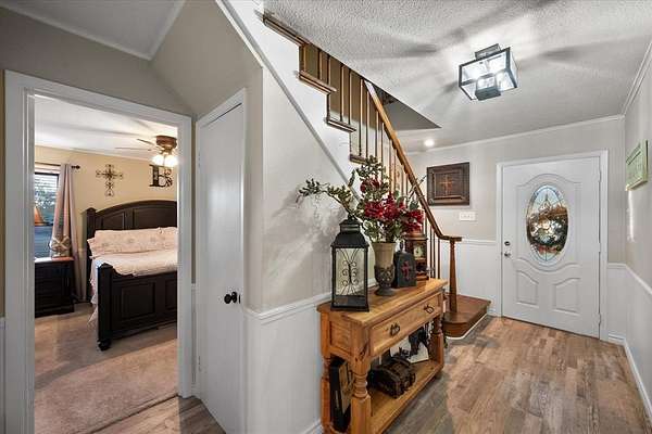 Welcome to this beautifully maintained 4-bedroom, 2-bath, 2-story home offering 2,796 square feet of comfortable living space on a 1.5-acre corner lot. With an open-concept layout and thoughtful updates throughout, this property perfectly blends modern convenience with small-town charm. Step inside to find a bright, open living area that flows seamlessly into the dining room and breakfast room, ideal for entertaining or family gatherings. The remodeled kitchen (2021) features a spacious island, pantry, and double oven--a cook's dream! Just off the living and dining area is an office, perfect for working from home or managing daily tasks. The primary bedroom and bath are conveniently located on the first floor, providing privacy and ease of access, while the second level offers three additional bedrooms and a full bath. Enjoy the stylish new luxury vinyl laminate flooring throughout the first level and abundant natural light from Andersen windows installed (2018). Outside, relax on the covered front or back patio overlooking a large, grassy backyard with a few mature trees--ideal for outdoor activities or future landscaping projects. A .5-acre corner portion of the property is zoned for commercial use, offering excellent potential for a small business, investment opportunity, or future development. The 2-car attached garage and additional 2 parking spaces in the shop offers plenty of storage and convenience. Recent upgrades provide peace of mind, including: new composite roof (9 months old), lifetime foundation warranty, majority new plumbing throughout, brand-new air conditioning unit for the second level, new breaker box (2021), exterior recently painted with new porch columns and trim, new wood fence (2016), termite treatment (2020) with 10-year warranty. Located in the desirable Bowie School District and just minutes from IOOF Park, this property offers the best of country-style living with easy access to local amenities. Call us today for a private showing!