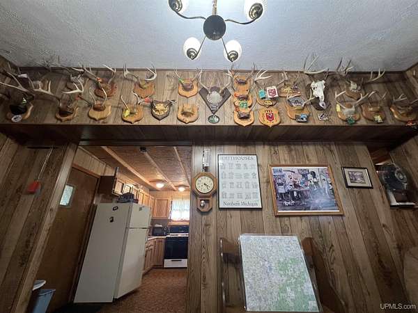 Your ultimate Upper Peninsula hunting camp awaits! This exceptional 8.6-acre mostly furnished property is a true sportsman's paradise, offering unparalleled access and features for serious outdoor enthusiasts. Directly abutting two sections of state land, this camp provides immediate and expansive access to thousands of acres of prime hunting territory, significantly extending your reach for deer and bear. Imagine stepping out your back door and into vast, untouched wilderness! The camp itself is thoughtfully equipped for comfort and convenience after a long day in the woods. Enjoy the warmth of a traditional sauna to unwind and relax. A dedicated root cellar provides ideal storage for harvests and supplies, while a sturdy buck pole stands ready for your prized trophies. Beyond the boundaries, explore your own private cranberry marsh, adding unique appeal and potential. This property is renowned for excellent deer and bear hunting, with signs of abundant. All offers due Thursday June 19th at 4pm.