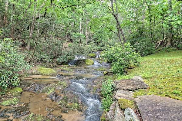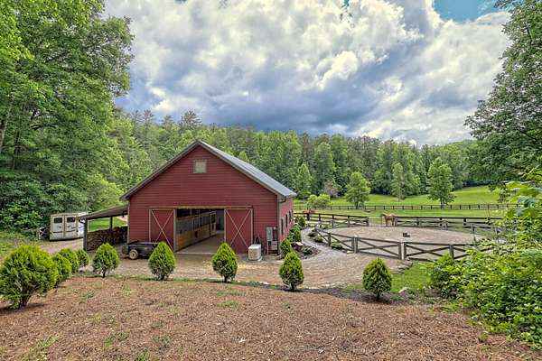 Moss Hill Ranch is a magnificent 50+ acre equestrian farm nestled in the picturesque surroundings of Clayton, Georgia. This exquisite property is a haven for horse enthusiasts seeking the perfect blend of natural beauty, tranquility, and state-of-the-art equestrian facilities. With its sprawling acres of lush pastures and well-designed amenities, this farm offers an exceptional opportunity for both professional and recreational equestrian pursuits. Four meticulously maintained pastures comprise more than half of the acreage, providing ample space to turnout, train, and ride your horses. The remainder of the landscape features a harmonious mix of open fields, three babbling creeks, wooded areas, horse trails, and manicured gardens, creating an idyllic backdrop for outdoor activities while maintaining utmost serenity. The far end of the property connects to the Bartram Trail for additional hiking, biking, and hunting, while the other end of the property is merely a 5-minute ATV ride to the Chatooga River, the only free-flowing body of water remaining in the southeast! The main barn, built just a few years ago, is a masterpiece of design and functionality. With 5 stalls---two of which can be converted into a mare and foal stall---your horses will enjoy maximum comfort and care. The barn also boasts a climate-controlled feed + tack room, dressing room, and bathroom; a hot + cold water concrete wash rack with drain; ample storage for equipment; and, a hay loft with access for a hay elevator. Every detail has been thoughtfully planned to ensure efficiency and convenience for both horses and owners. Beyond the main barn, Moss Hill Ranch offers additional equestrian amenities to captivate even the most discerning riders: freshly creosoted fence lines, a round pen, and EquiTred drainage, to name a few. For those seeking a harmonious place to unwind and relax, the property boasts two residences. The primary residence is a stunning Bonner and Buchanan custom home built in 2017, featuring 4 BD / 4.5 BA, on-trend finishes, a well-appointed kitchen, and outdoor space galore. Nanawalls in the great room and dining room open to a screened-in porch that amplifies the sound of rushing water from Dick's Creek, which runs along the perimeter of the home. An additional balcony with phantom screen in the master bedroom provides breathtaking views and enables you to soak in the tranquility of the surroundings. The 4 BD / 3 BA secondary residence---ideal for a caretaker's home or a true family estate---provides a comfortable retreat after a day spent with horses. Whether you are a professional equestrian seeking a training facility or a passionate horse lover yearning for a peaceful retreat, Moss Hill Ranch presents an extraordinary opportunity for all equine pursuits. This horse farm is a true hidden gem, where the beauty of nature, the well-being of horses, and the comforts of modern living seamlessly converge into a perfectly idyllic property. This is your opportunity to embark on an unforgettable equestrian journey in beloved Rabun County.